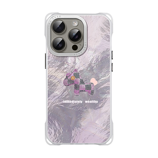 "马上发财"原创紫适用苹果16手机壳挂绳斜挎可背iphone15promax四角开孔13背带斜跨17手腕手提14带子背包式12