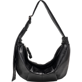 是自由啊 「陌离」真皮通勤流浪包小众设计牛角包单肩斜挎饺子包
