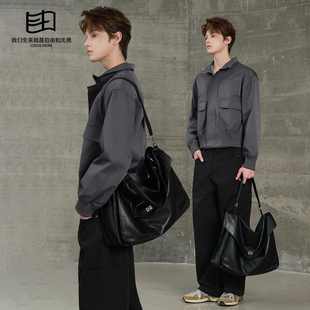 是自由啊 潮牌软皮斜挎包男小众设计通勤单肩包大容量托特包男包