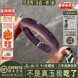 清玉缘天然玛瑙手镯女款冰飘紫冰种玉镯子高冰透淡紫色玉髓非翡翠