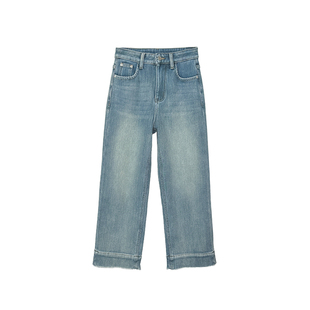 太平鸟高腰阔腿微喇裤26春款时髦水洗通勤四面弹修身喇叭牛仔裤女