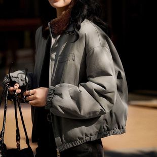"鸳鸯拿铁"两面穿~仿貂毛夹克 轻派克短款小立领外套2025冬季新款