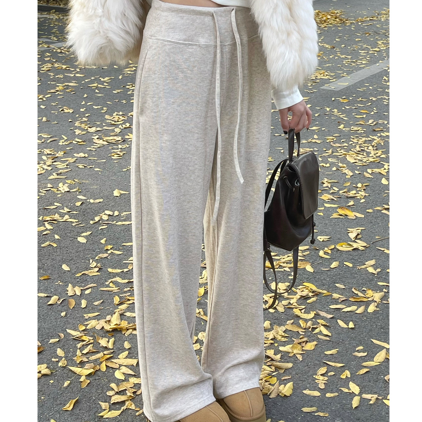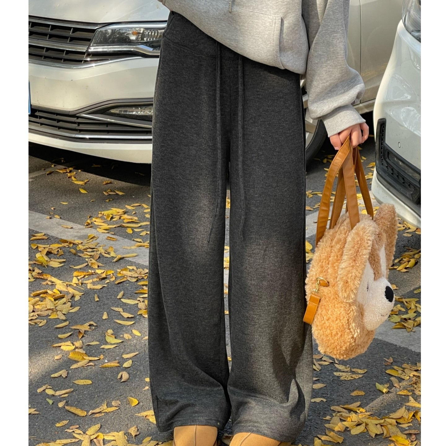 📚 灰色微喇叭阔腿裤报恩裤女高腰显瘦垂坠感软糯宽松慵懒休闲糯米裤