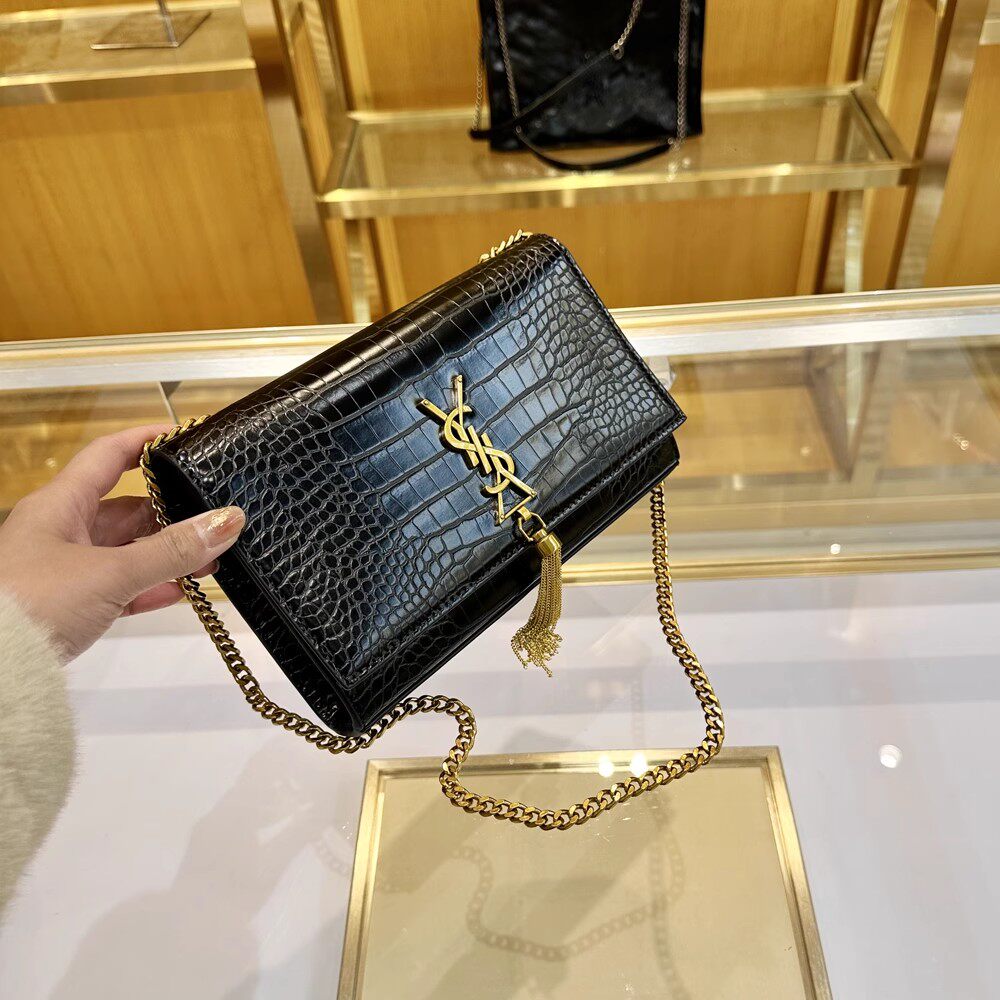 📚 香港新款潮斜挎包鳄鱼纹女包流苏链条包轻奢时尚百搭单肩斜挎女包