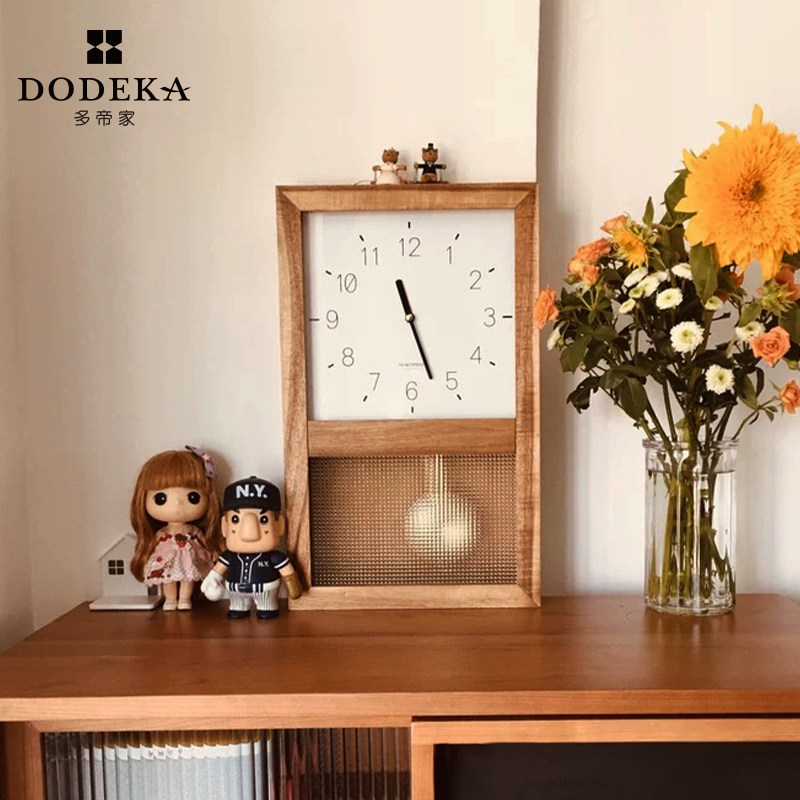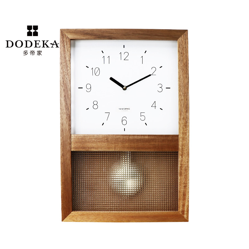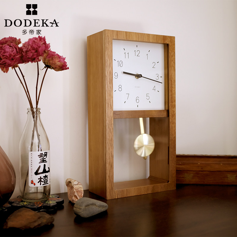 📚 多帝家日式复古实木钟p表挂钟客厅家用北欧时钟挂墙装饰表报时摆