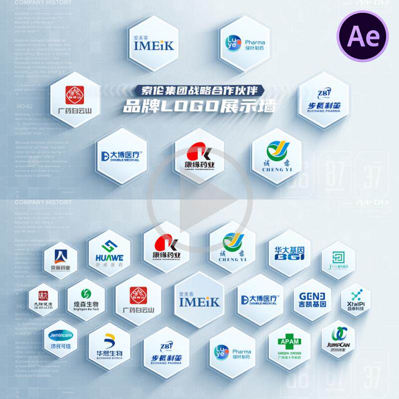 📚 企业logo展示墙AE合作关系科技联合出品多logo知名企业合作AE模板