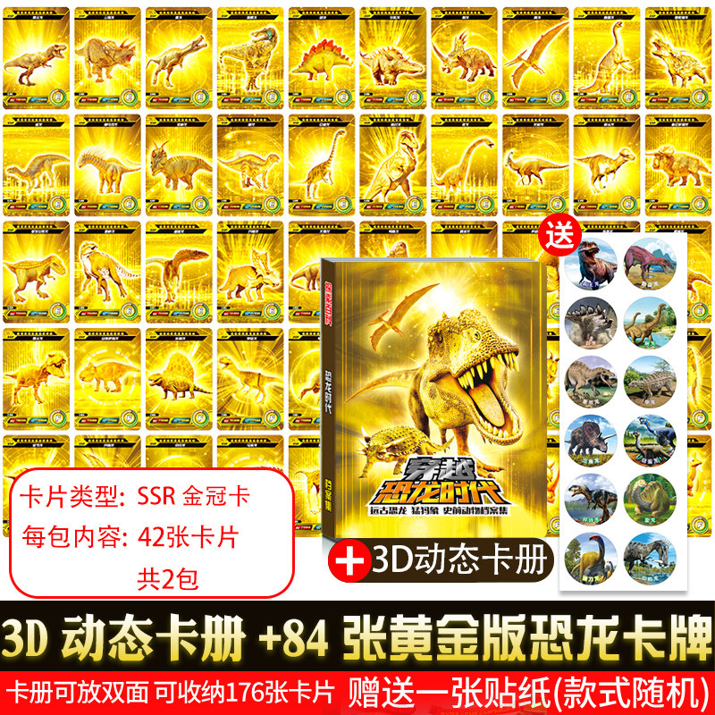 📚 恐龙卡片闪卡儿童3D收集册卡通动物卡牌认知早教霸王龙男孩玩具