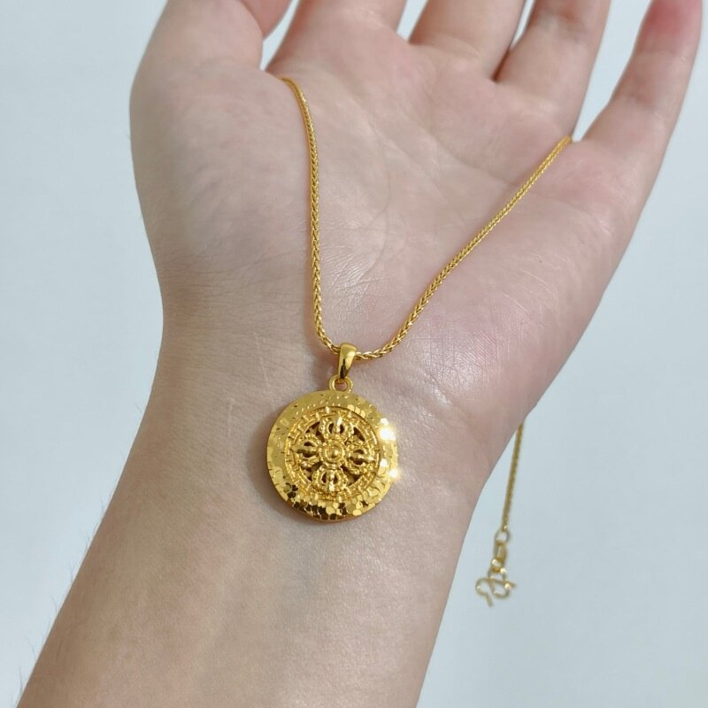 📚 欧美跨境外贸沙金饰品新中式碎冰冰金刚杵圆盘吊坠时尚金久不手饰