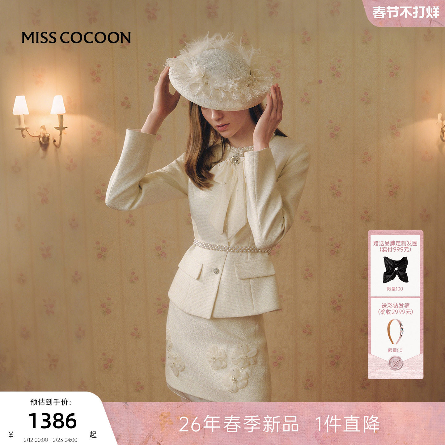69¥ CZ193 EJu0ULoAuQ1¥ https://m.tb.cn/h.7A1F5hY MISSCOCOON可可尼收腰圆领上衣女2026春季新款小香风蝴蝶结短外套 --------------------- 【原售价】3,159元 【现售价】899元。