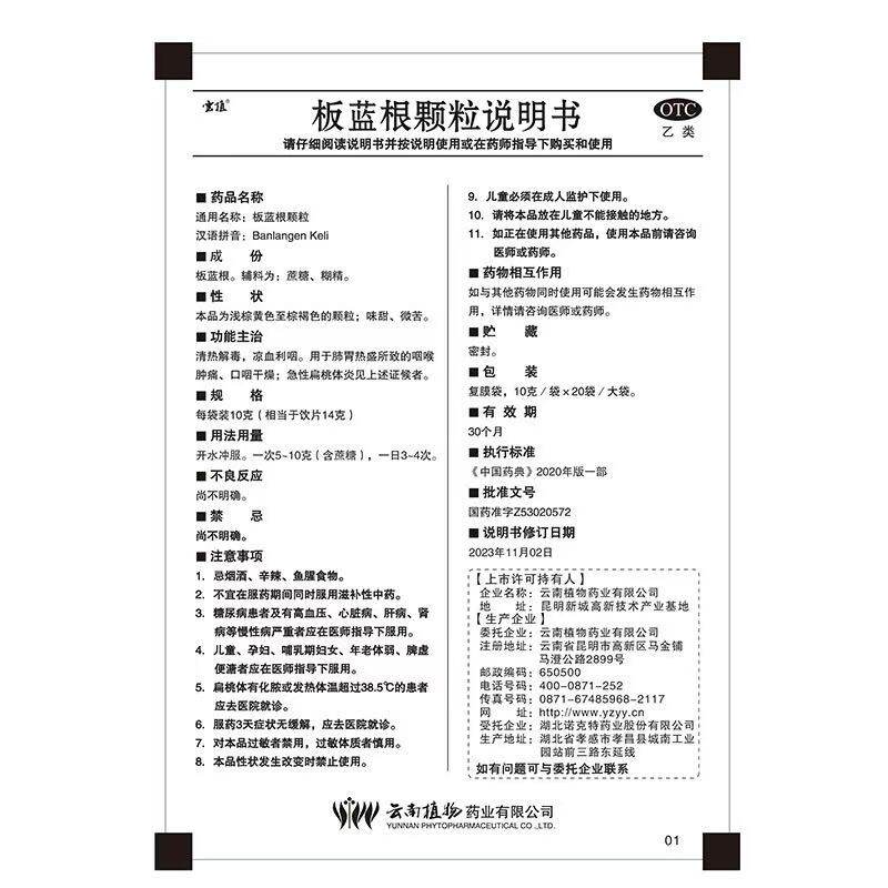 📚 【云植】板蓝根颗粒 10g*20袋/大袋