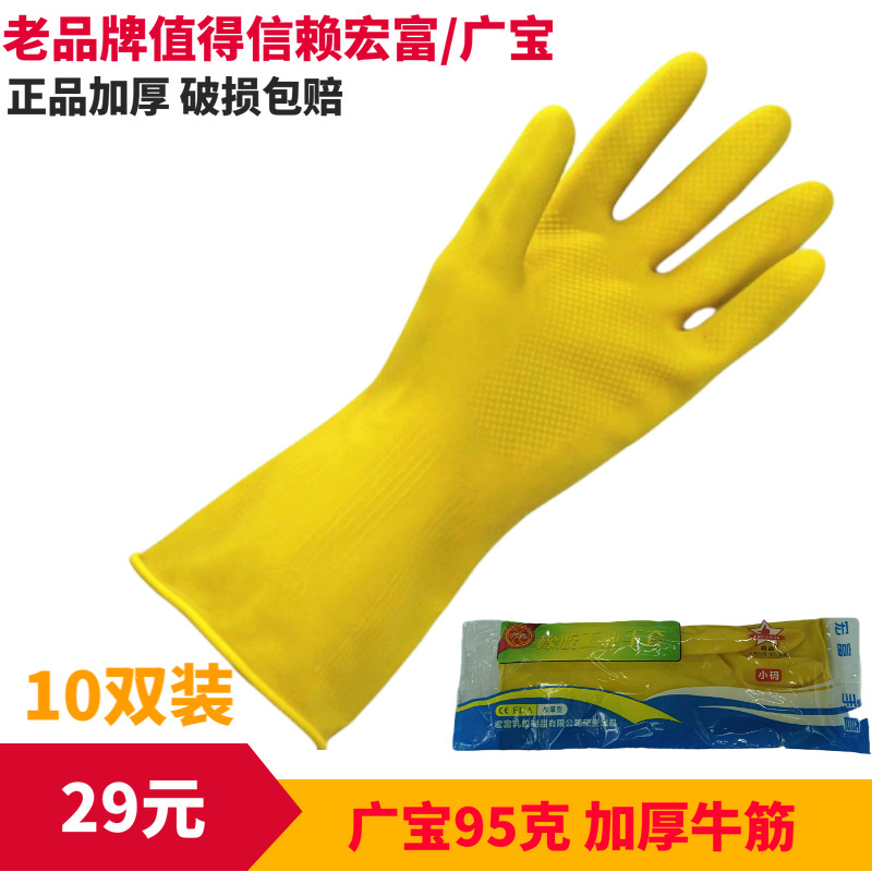 📚 加厚宏富乳胶洗衣家务洗碗橡胶皮手套耐磨女防水厨房耐用牛筋广宝