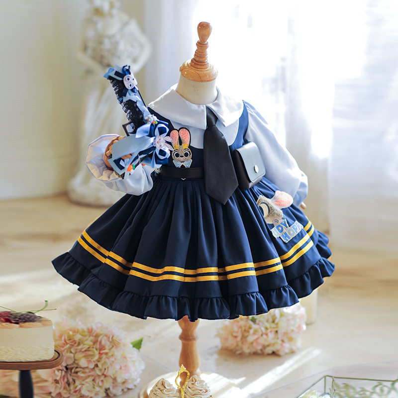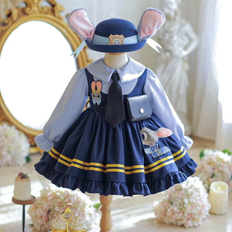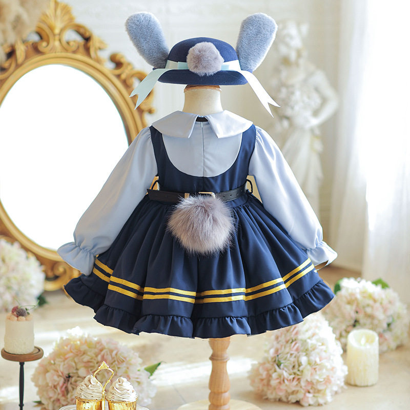 📚 秋冬加绒女童朱迪兔子警官连衣裙儿童洛丽塔公主裙女孩生日裙子