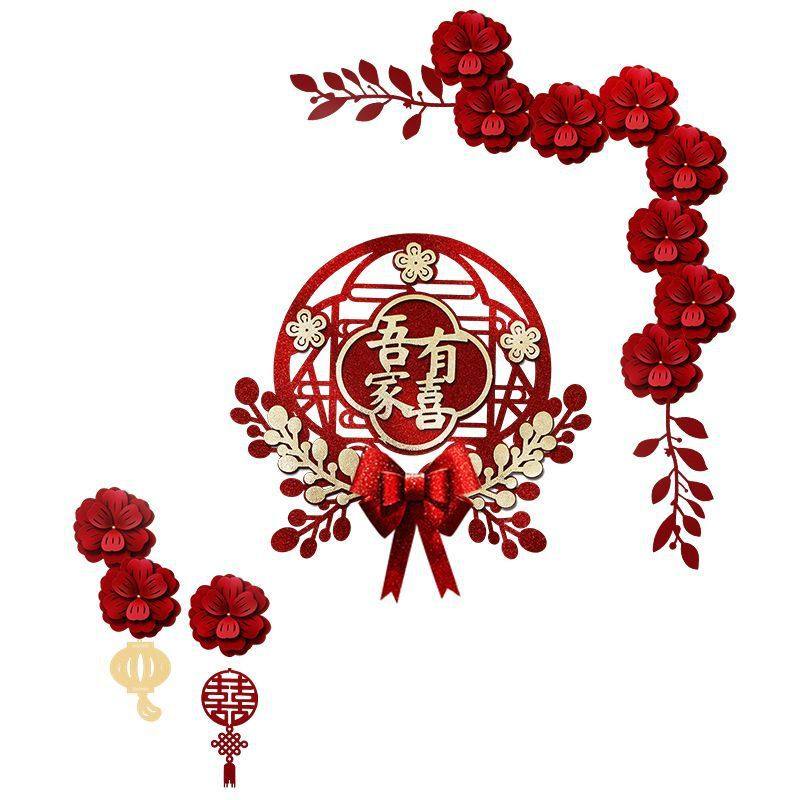 📚 婚房布置房门喜字贴拉花新房结婚背景装饰花朵喜字卧室客厅门喜贴
