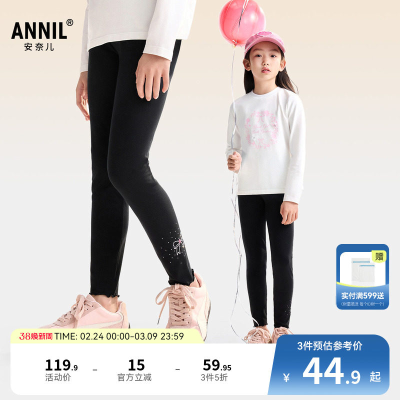 📚 安奈儿童装女童针织打底裤秋新款弹力贴身黑色保暖内搭甜美