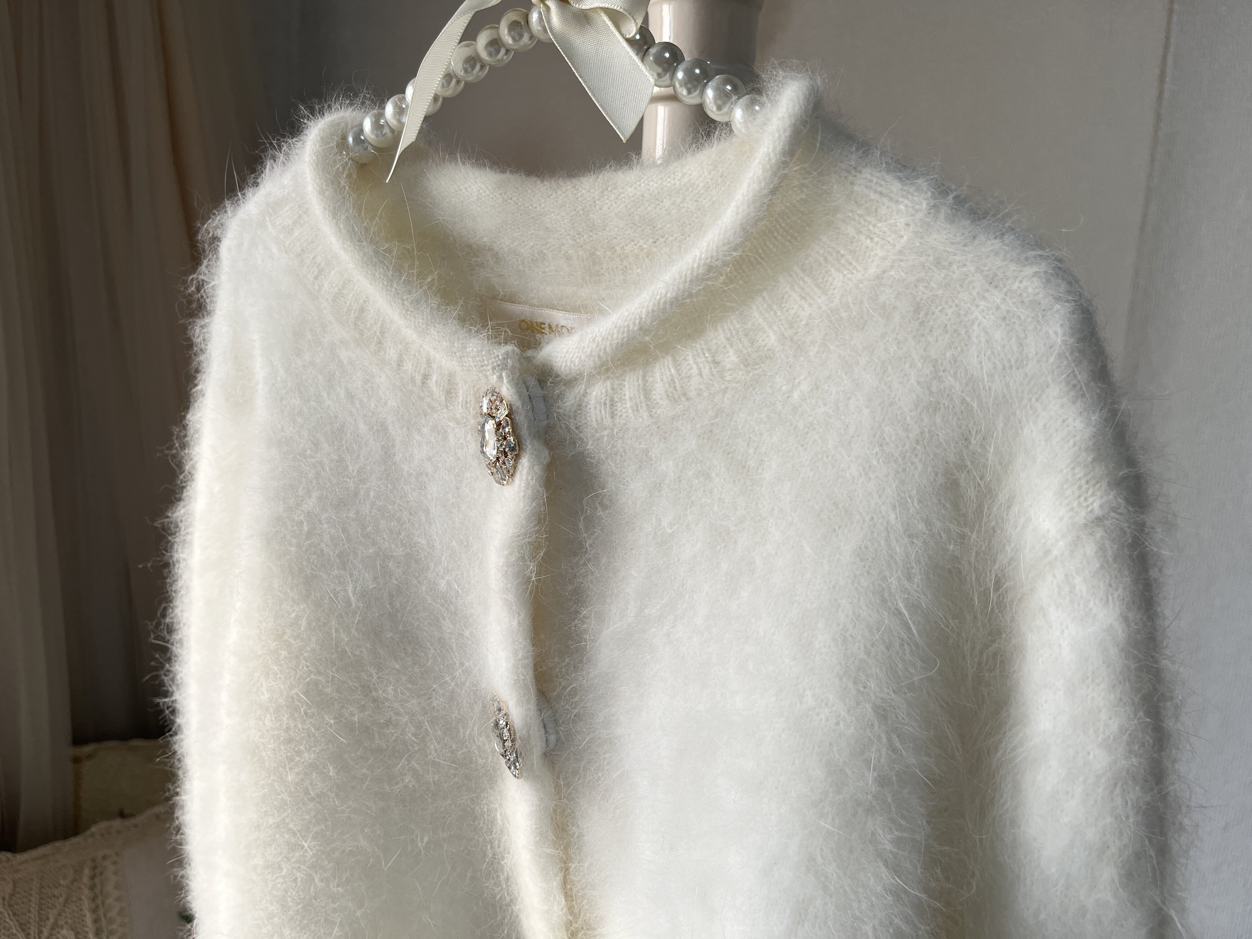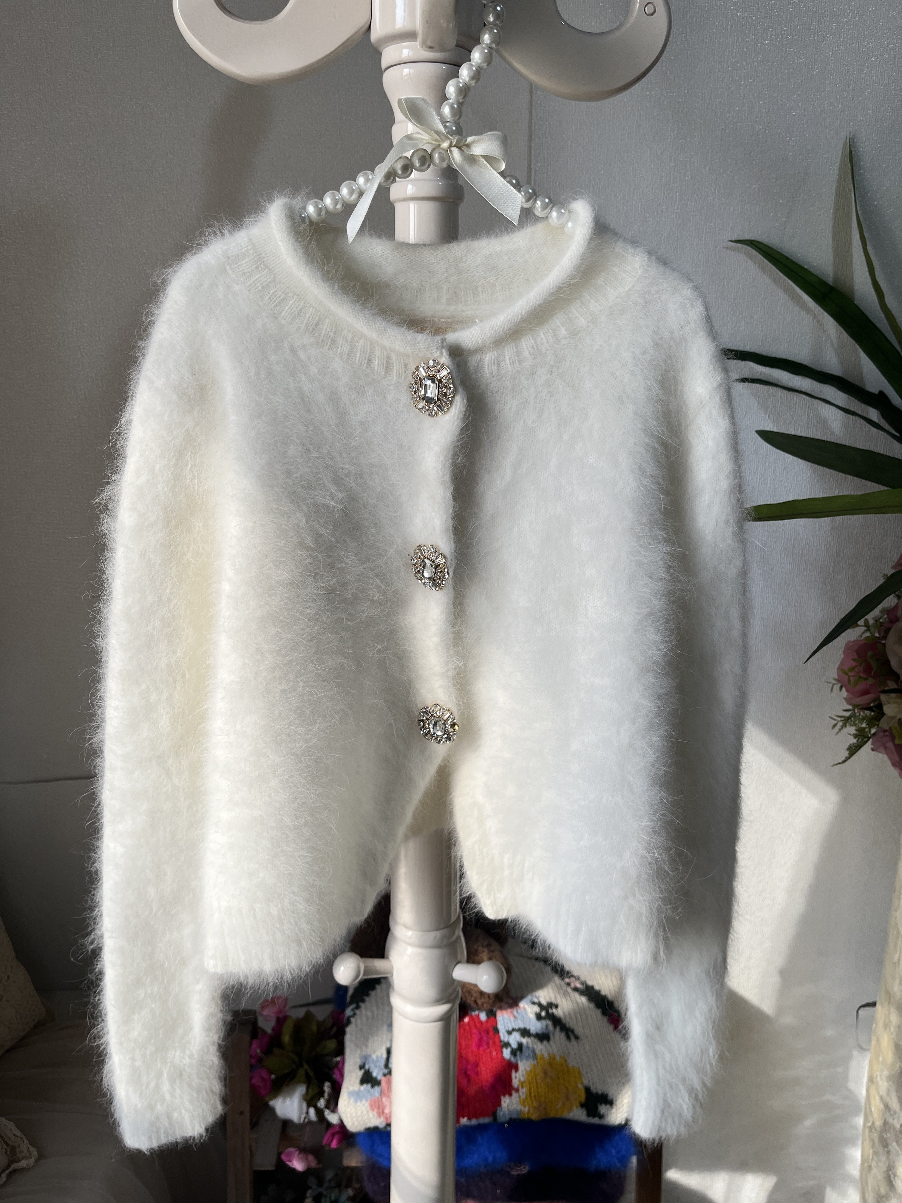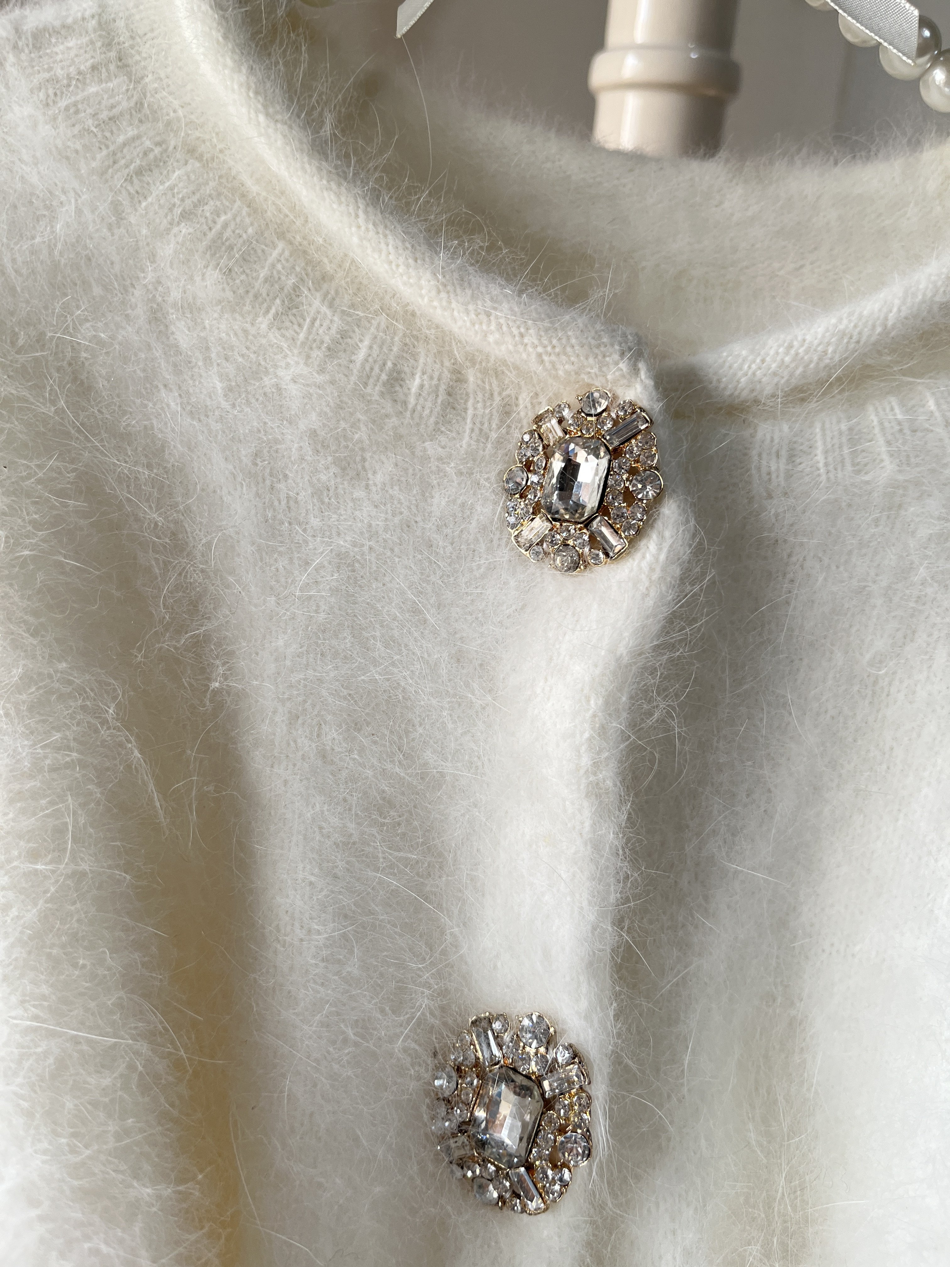 💥心动开启!日系纯白色圆领水晶扣超柔兔毛开衫,券后仅209,让你一秒入冬�