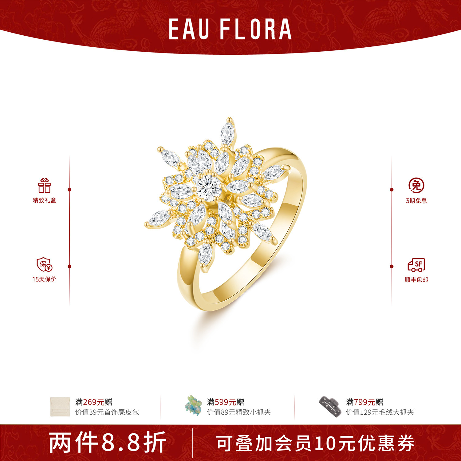 69¥ CZ193 ULJWUMUC8bK¥ https://m.tb.cn/h.7yr4Eny EAUFLORA雪花开口金银色戒指轻奢高级小众设计感女款闺蜜生日礼物 --------------------- 【原售价】399元 【现售价】399元。