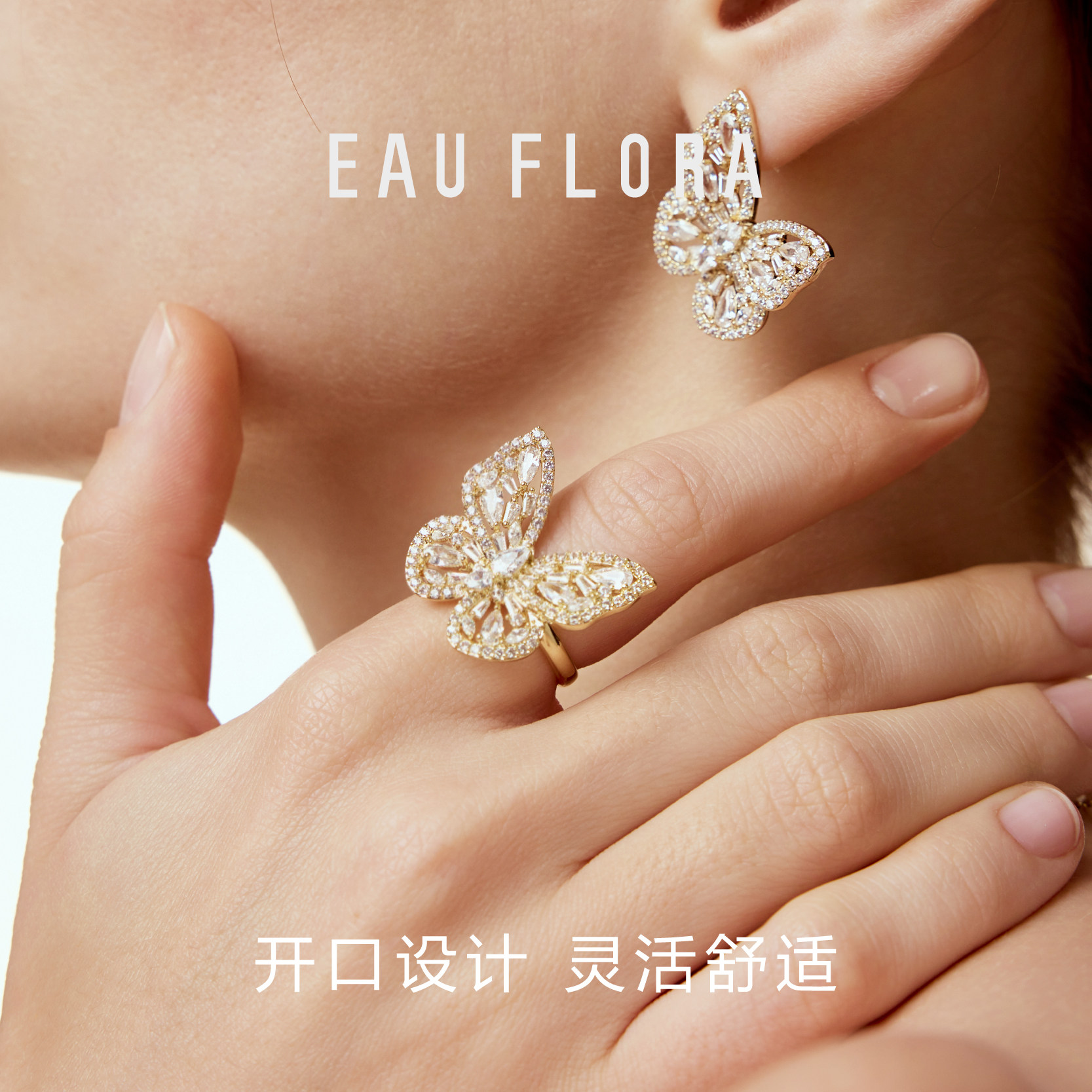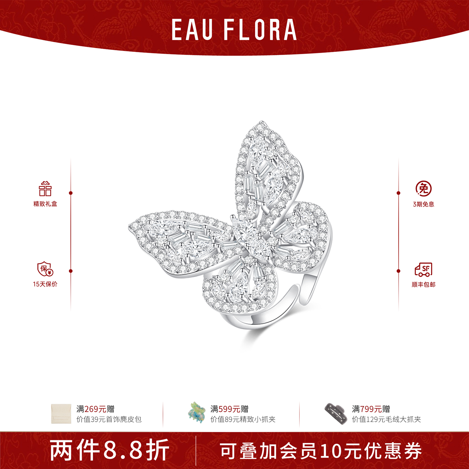 📚 【狙击蝴蝶同款】EAUFLORA蝴蝶戒指轻奢高级银色开口指环生日礼物