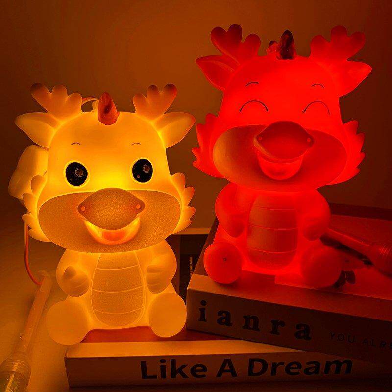 📚 龙宝宝灯笼手提圣诞春节卡通可爱生肖龙年搪胶存钱罐花灯音乐发光