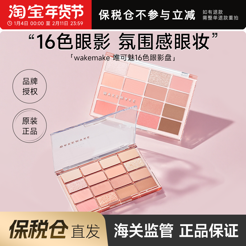 📚 【保税仓】韩国WAKEMAKE眼影盘16色多色珠光哑光日常淡妆唯可魅