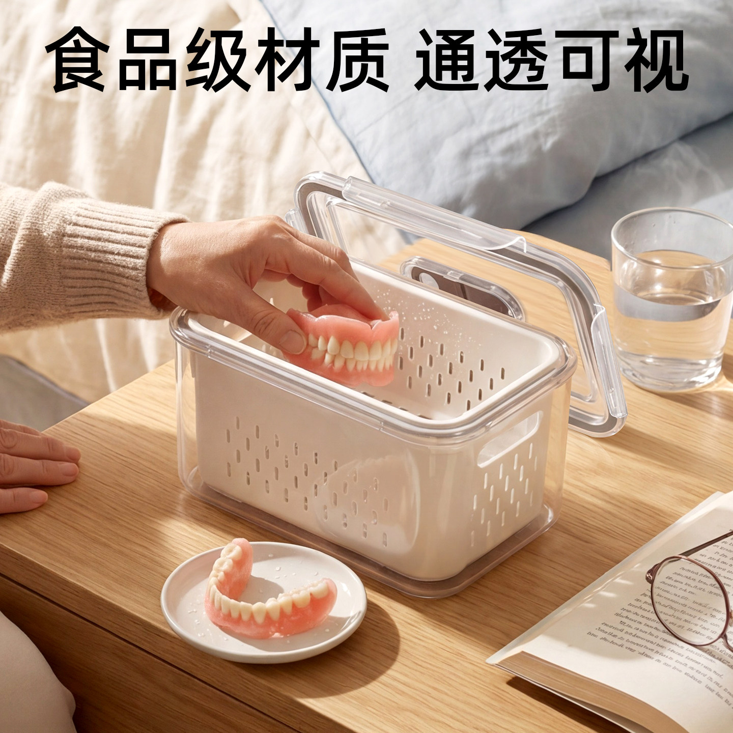 📚 老人假牙收纳盒老年人清洗全口食品级便携清洁泡容器浸泡义齿盒子