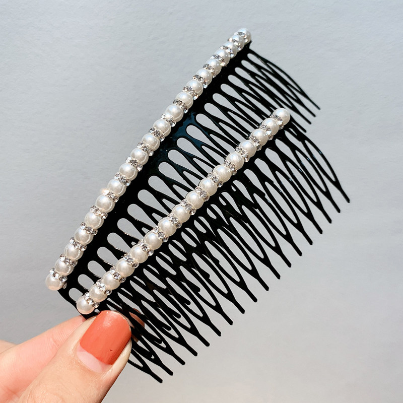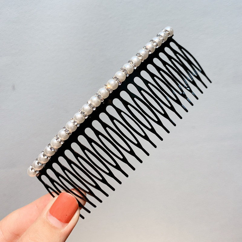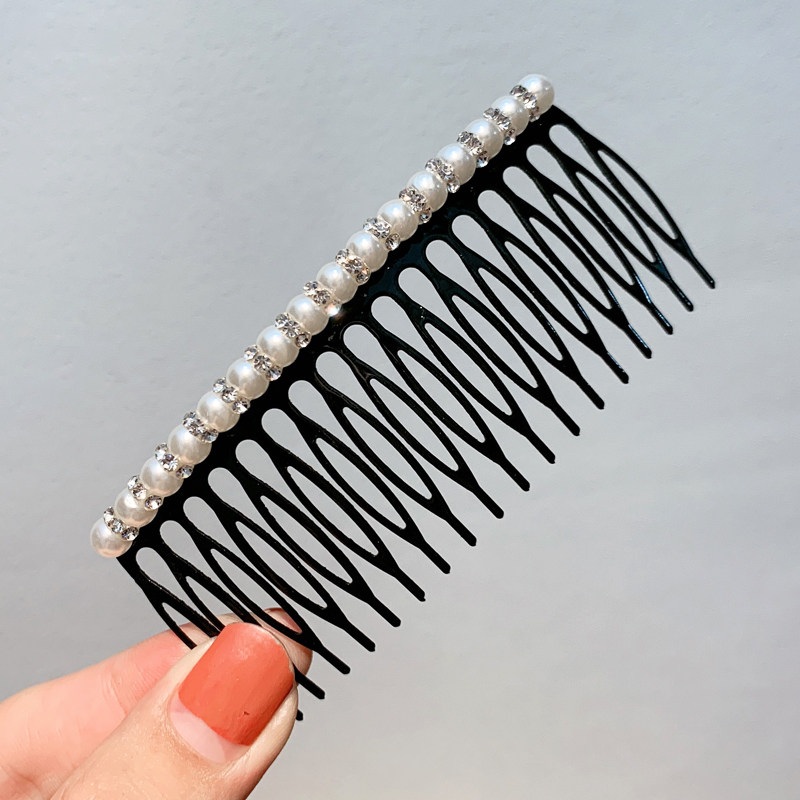 📚 甜美珍珠水钻发梳插梳发卡韩国简约百搭刘海梳边卡顶夹盘发头饰女