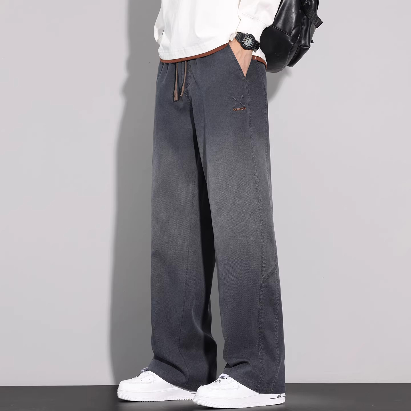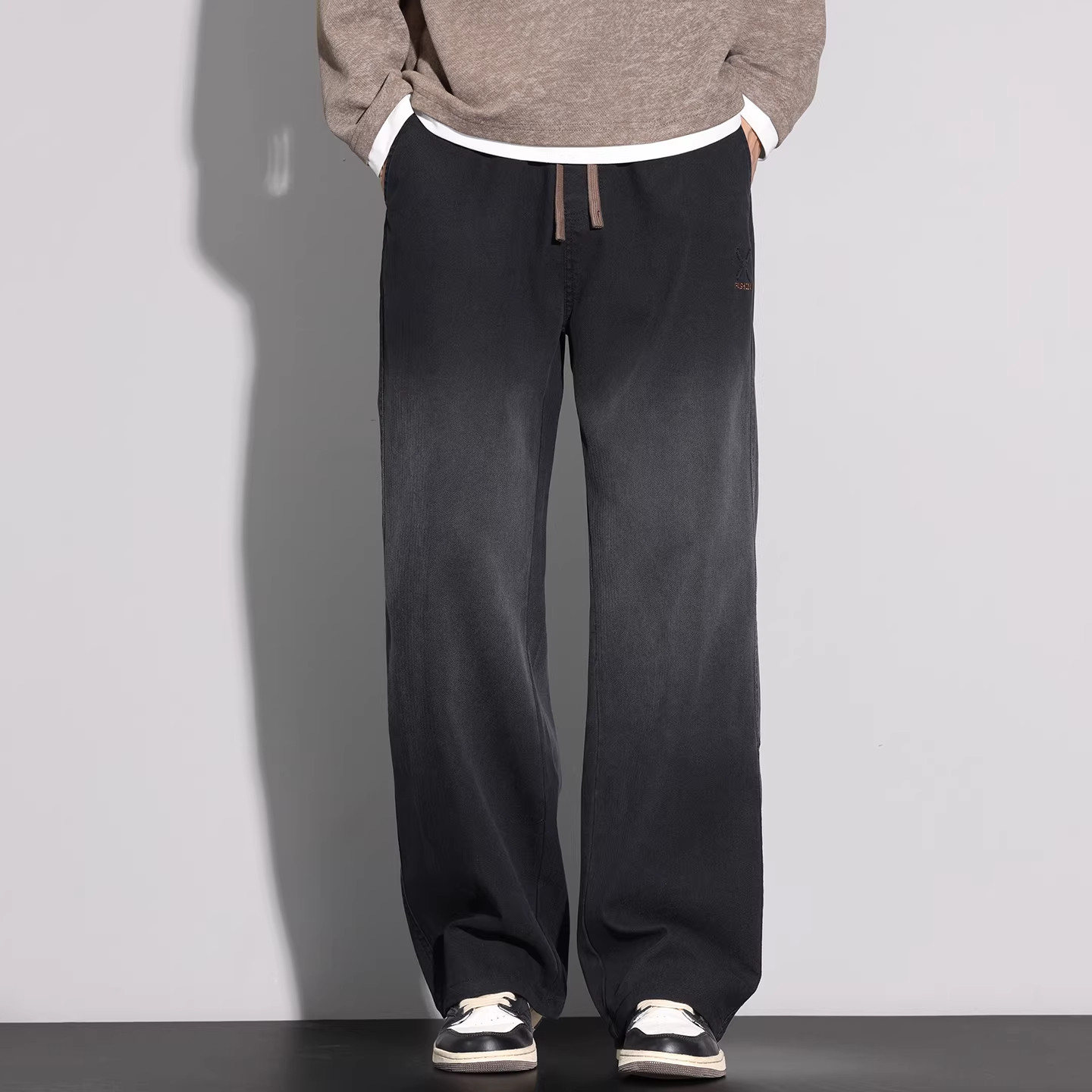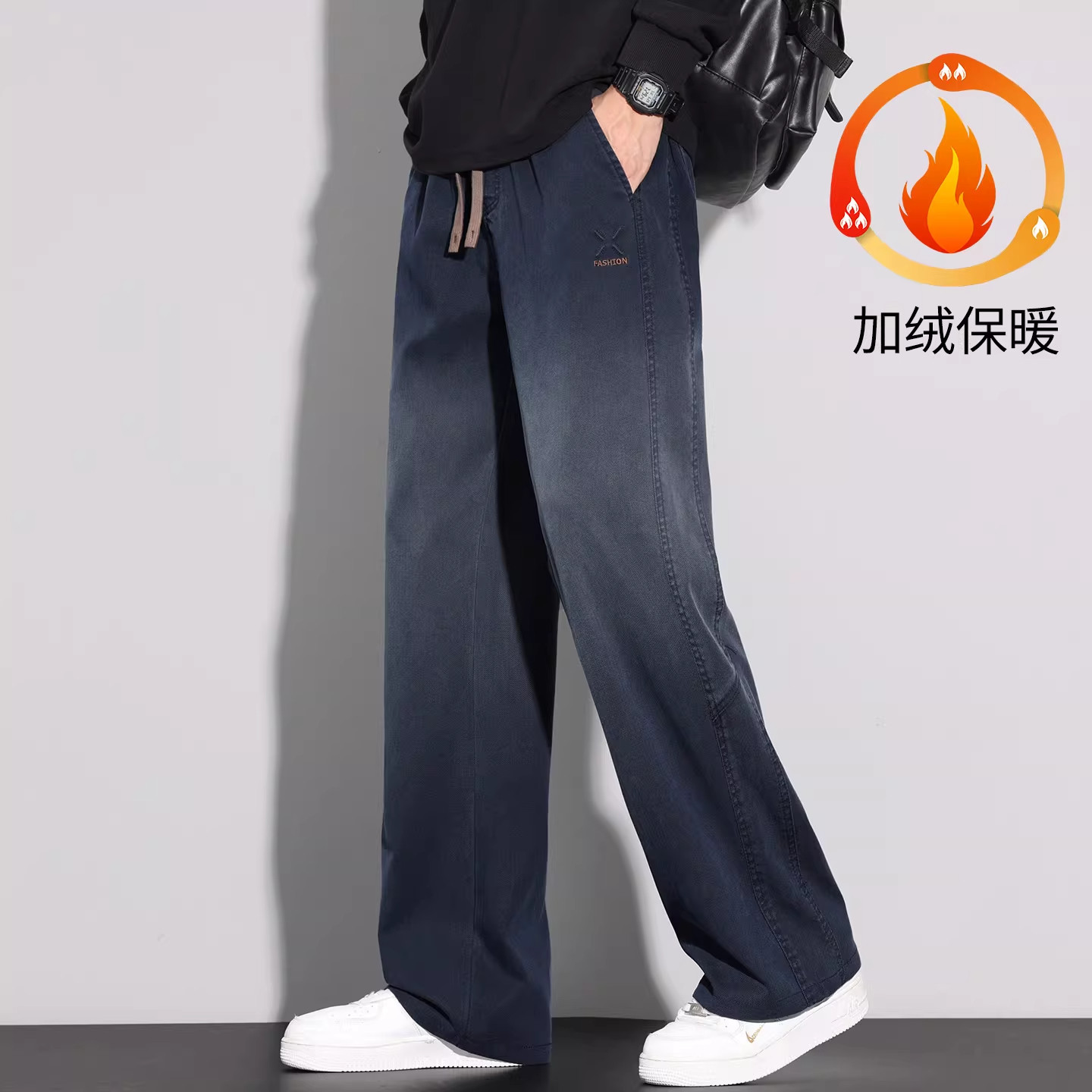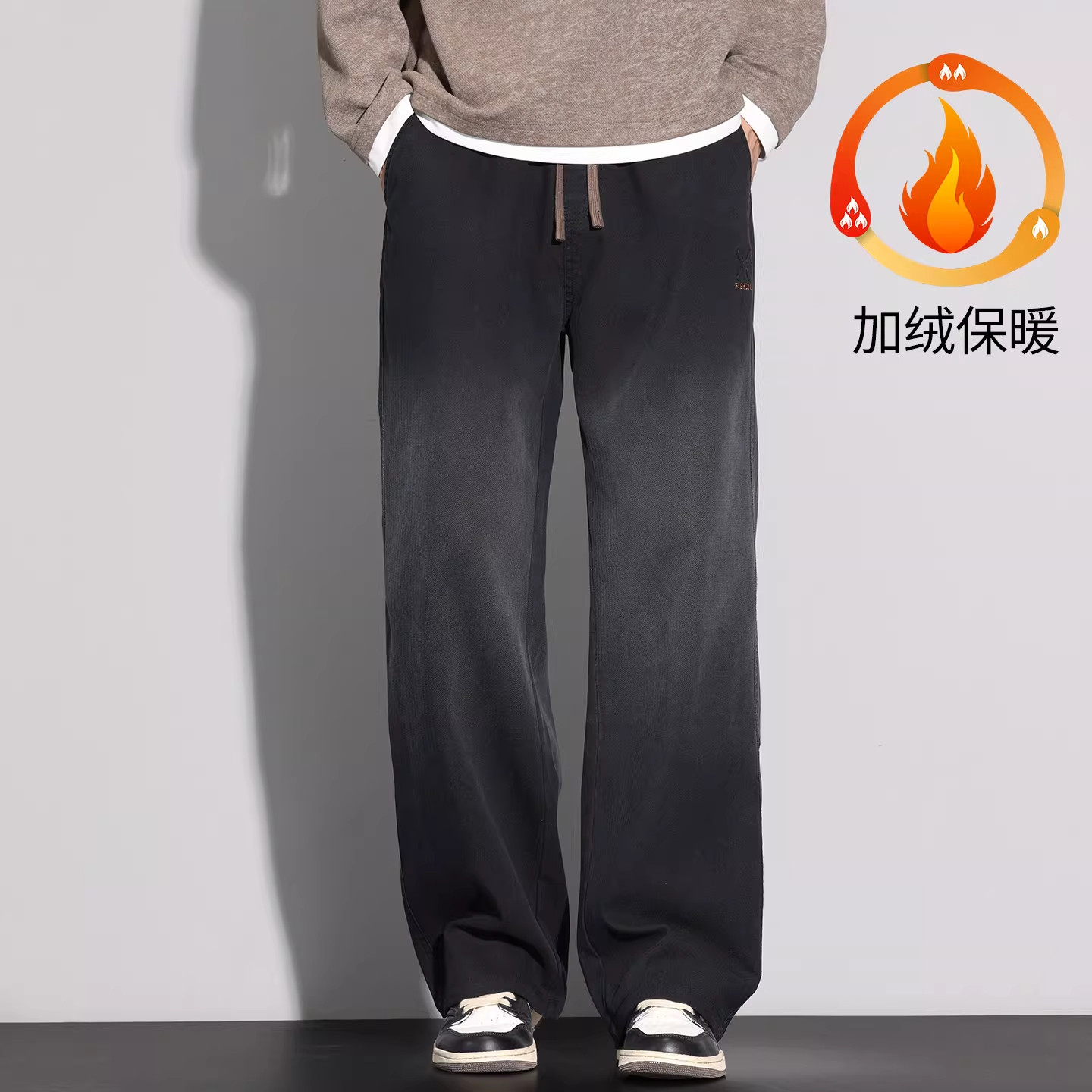 📚 WOODSOON秋冬季男生时尚休闲直筒牛仔裤加绒宽松百搭男士长裤子