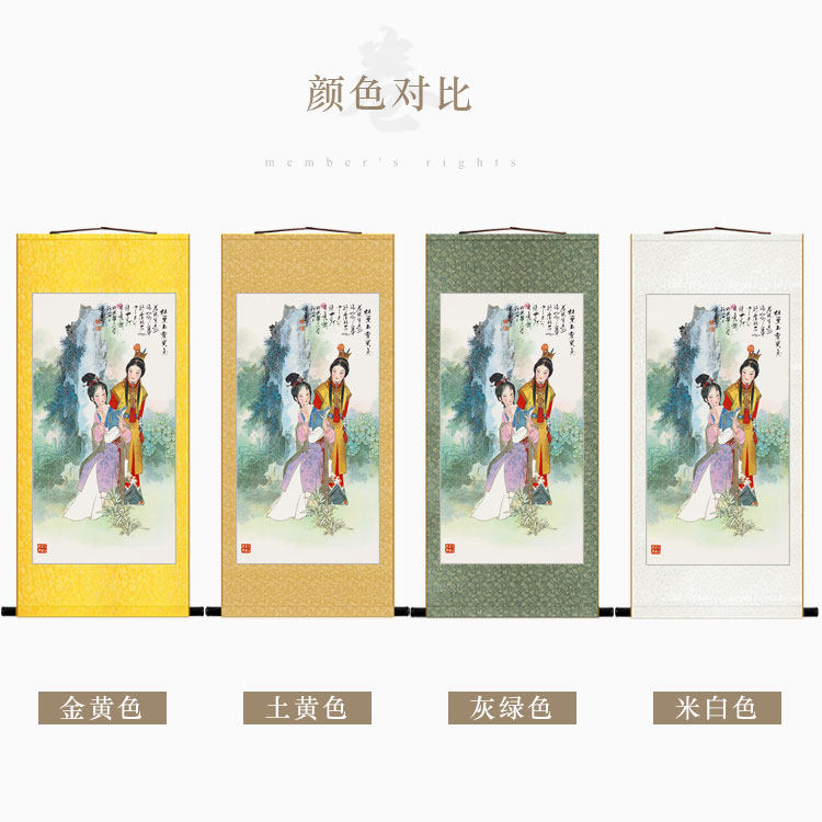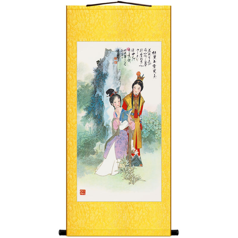 📚 贾宝玉林黛玉画像 红楼梦人物卷轴挂画 绢布丝绸装饰画来图定制