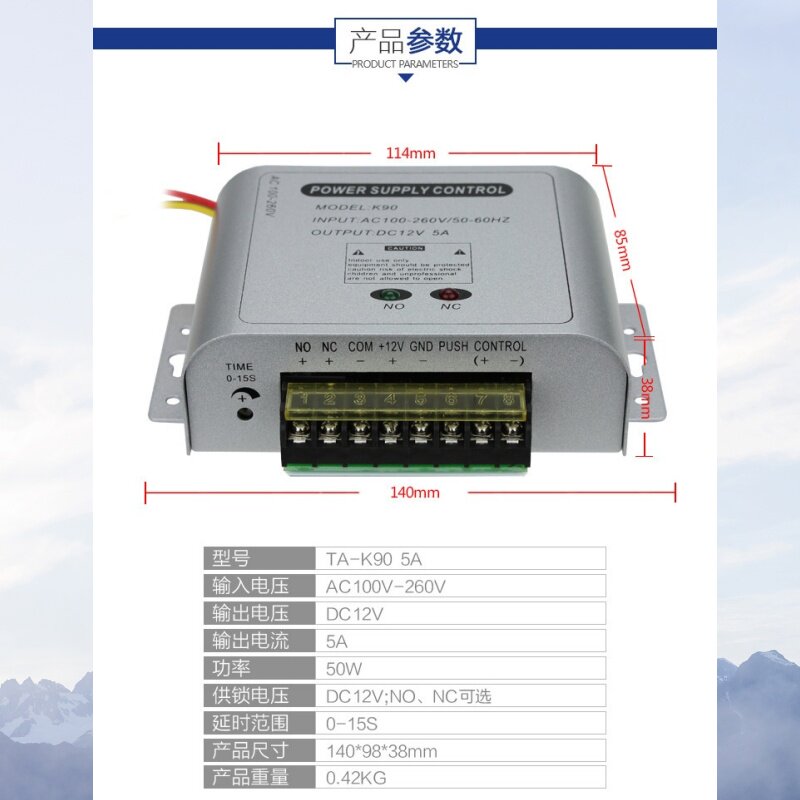 📚 动态人脸考勤机门禁机电源大功率12V5A稳压开关电源K90中控xface