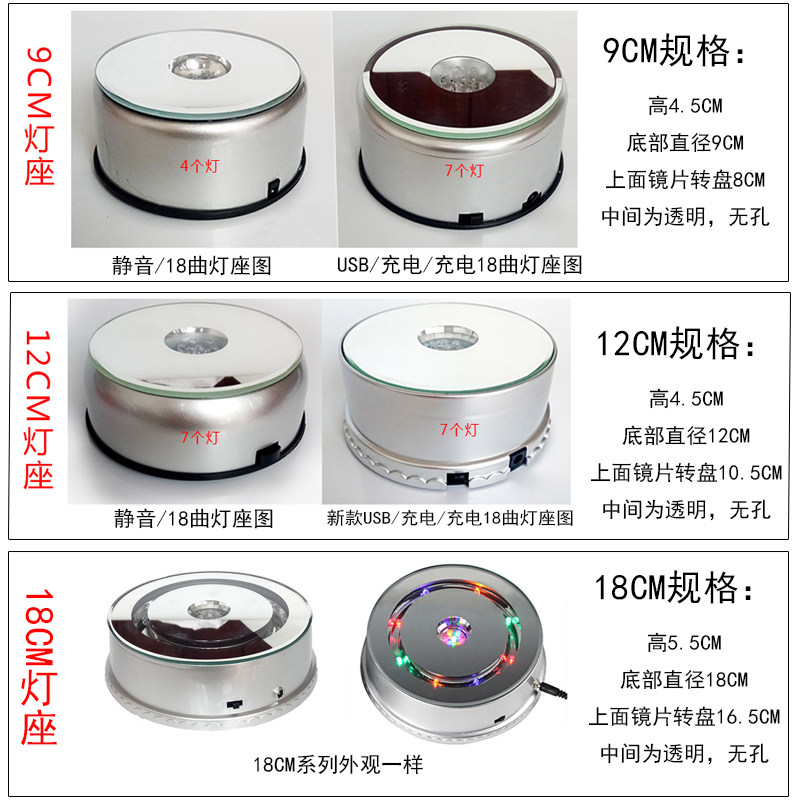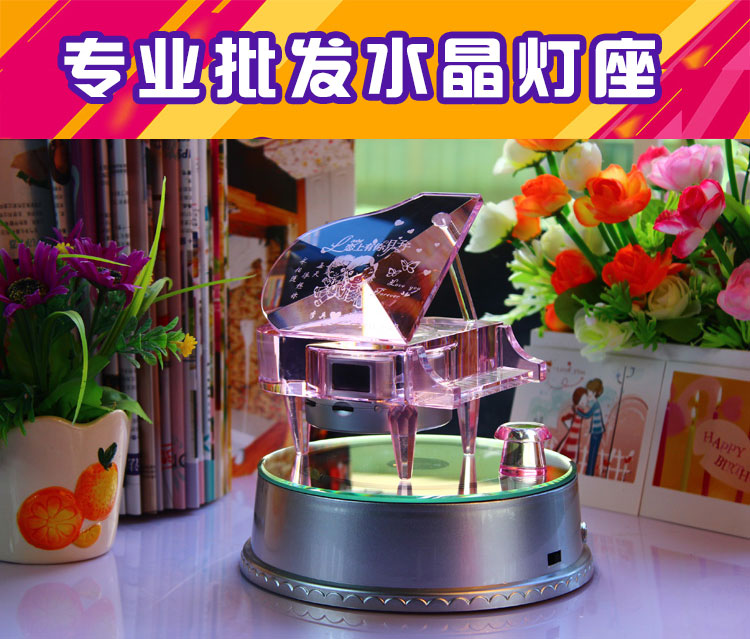 📚 LED七彩旋转发光音乐灯座水晶钢琴底座冰山工艺品摆件可充电