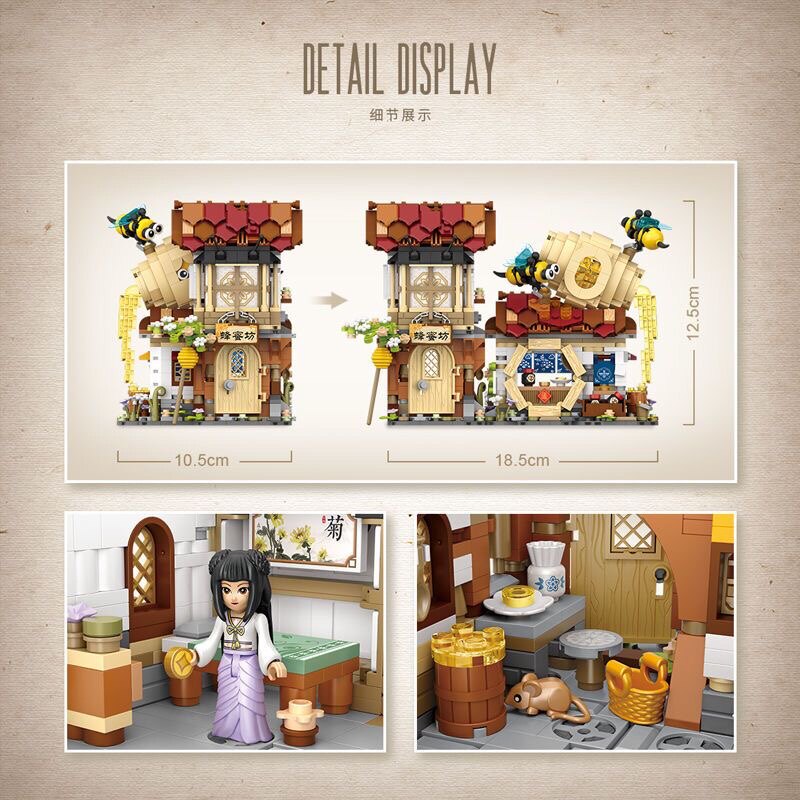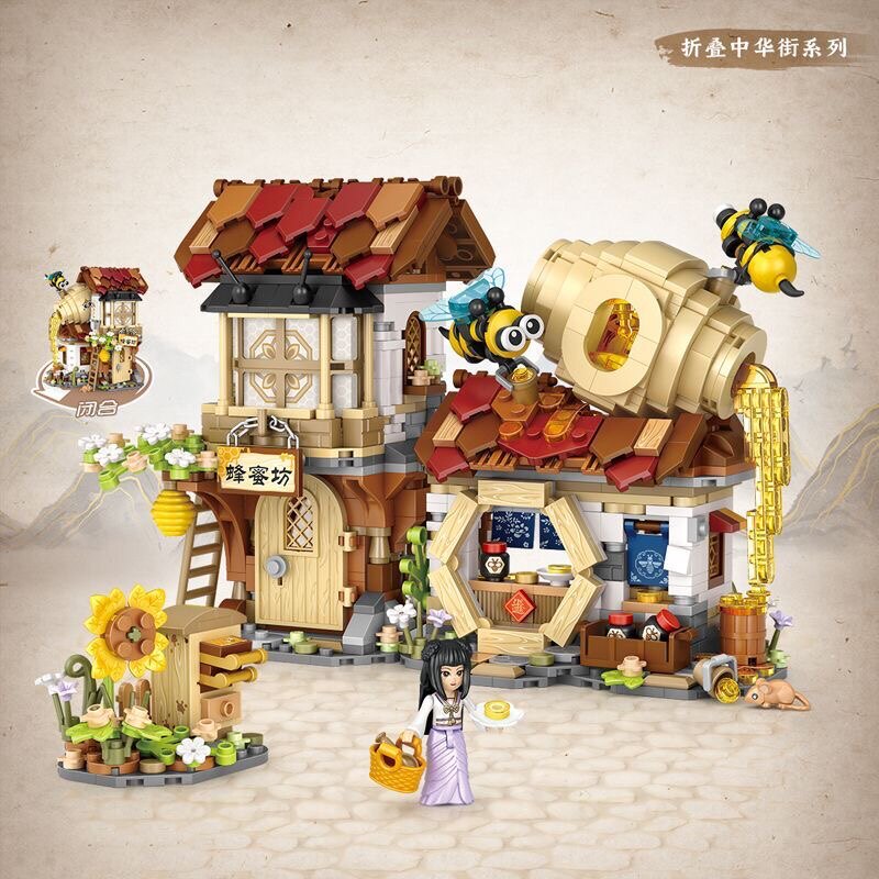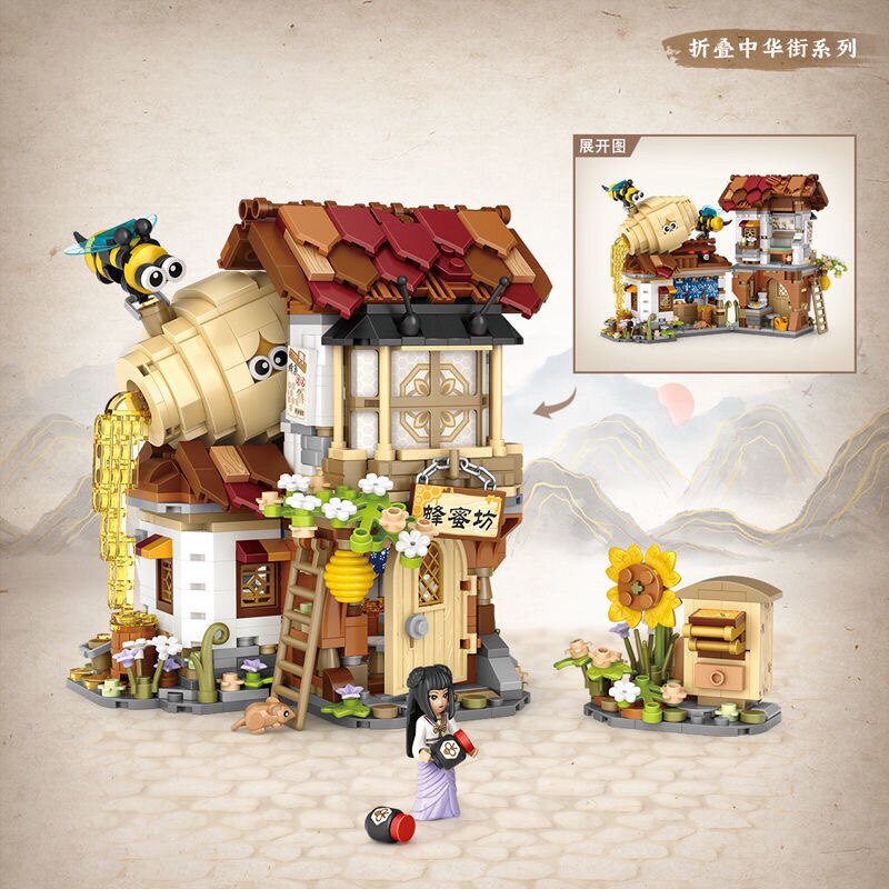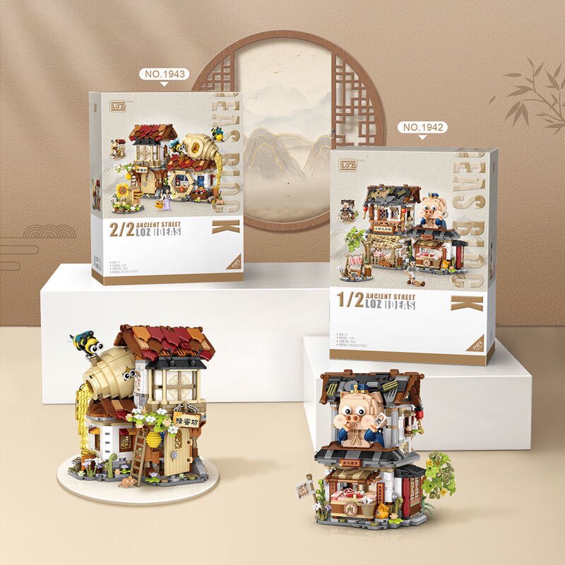 📚 LOZ/俐智蜂蜜工坊 折叠中华街小颗粒拼装积木 迷你古风街景组装