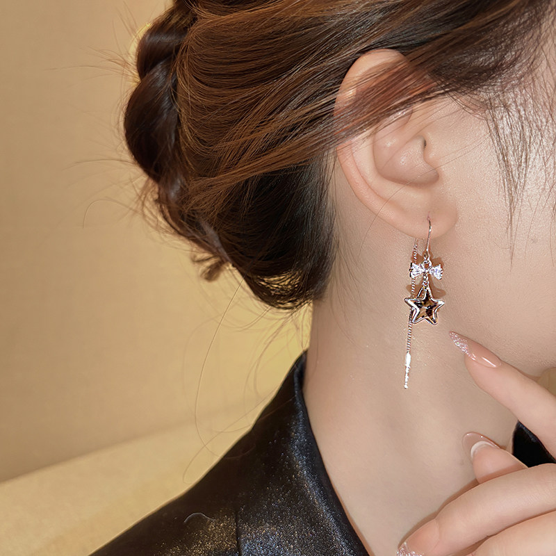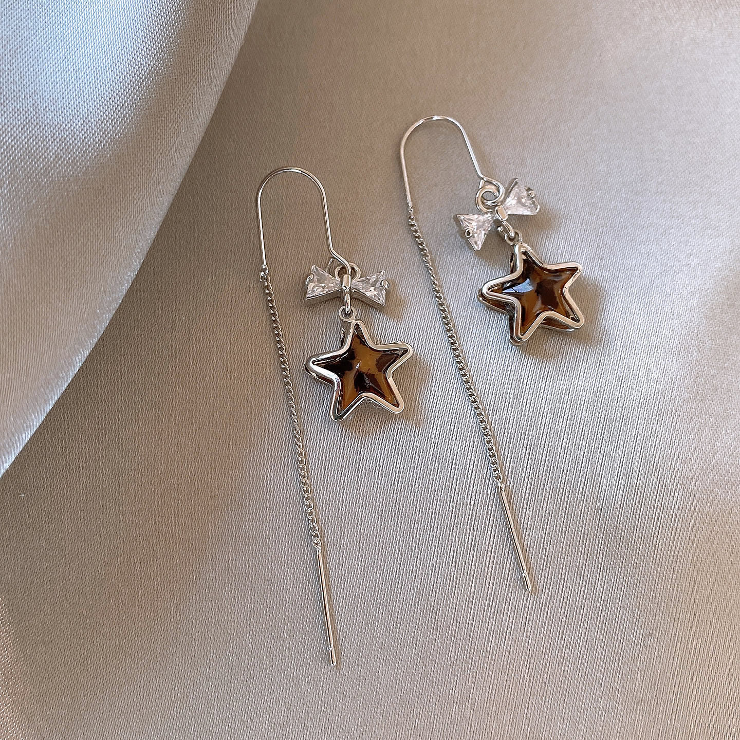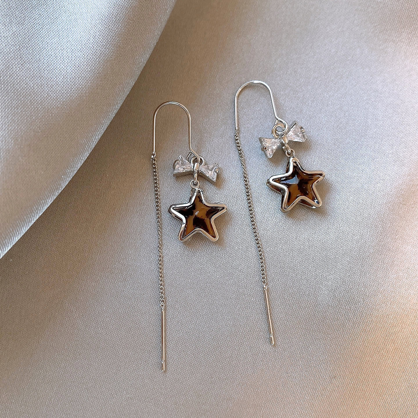 📚 咖色豹纹星星珍珠耳线耳环女秋冬高级感轻奢耳钉夸张独特漂亮耳饰
