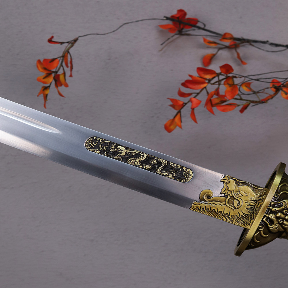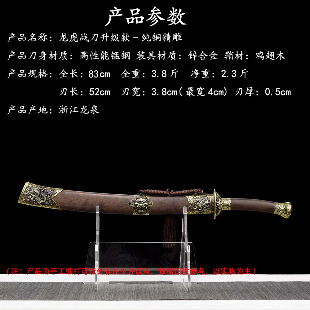 📚 龙泉宝刀黄铜镶嵌龙虎战刀锰钢一体锻造鸡翅木鞘工艺品收藏未开刃
