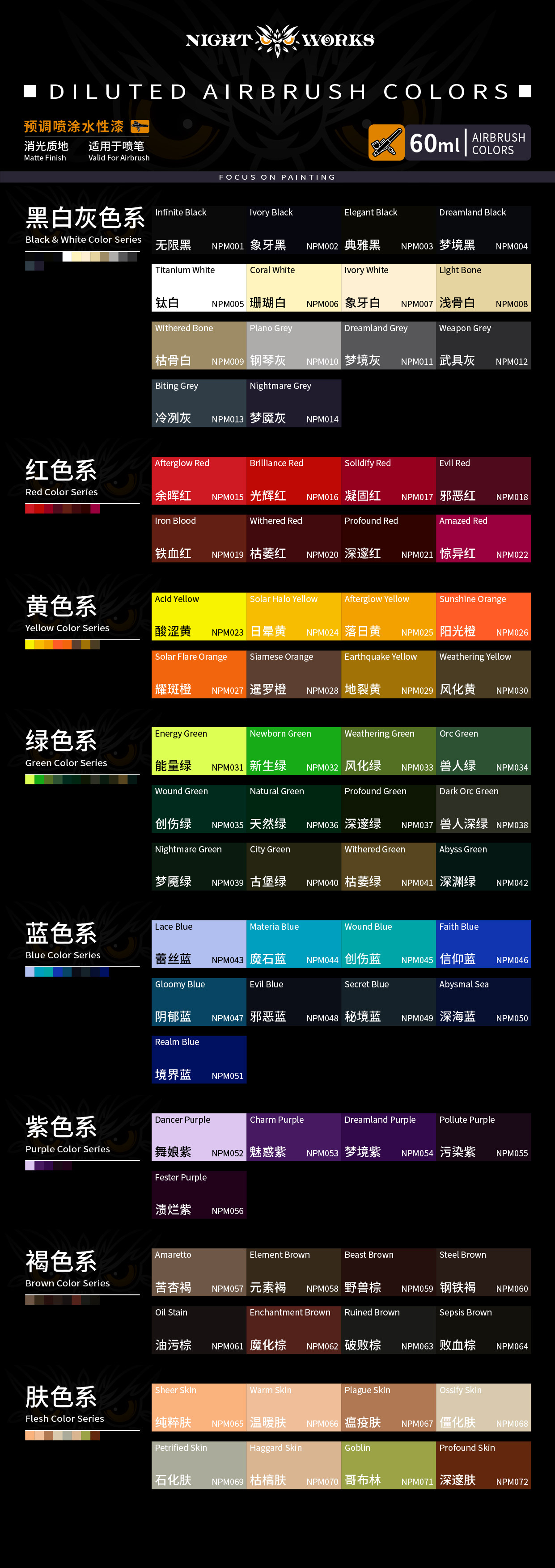 📚 夜店漆NightWorks NPM 预调喷涂漆60ml消光 不堵笔/不积漆 棕褐色
