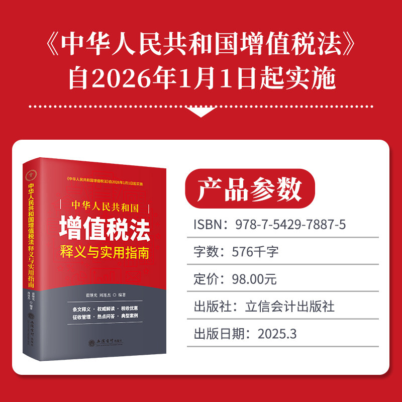 📚 2025年版中华人民共和国增值税法释义与实用指南 翟继光编著立信会计出版社正版条文释义解读法律法规与政策指引税收优惠典型案例