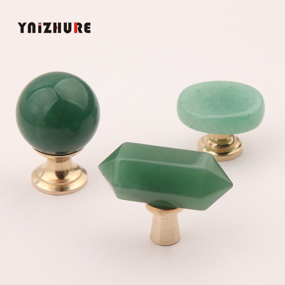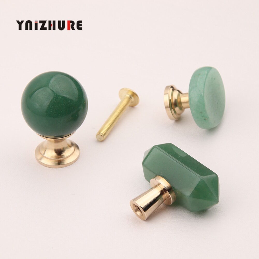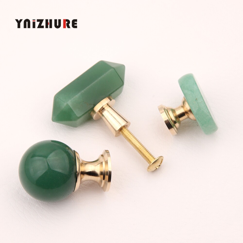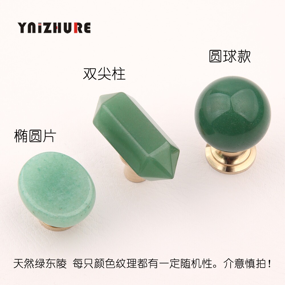 📚 轻奢天然矿石绿东陵黄铜创意小拉手抽屉橱柜门衣柜单孔创意把手