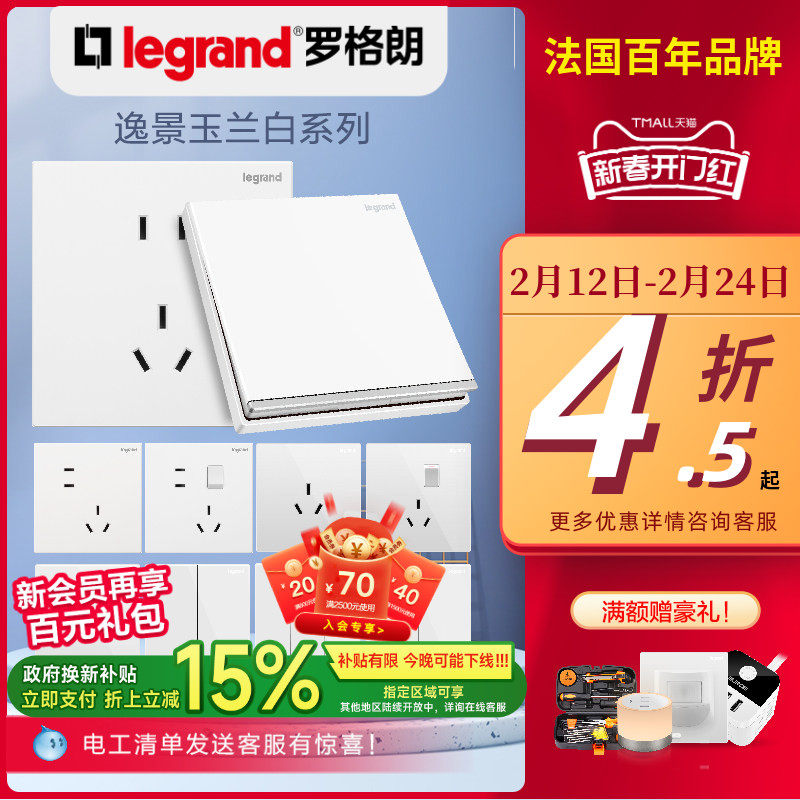 📚 罗格朗开关插座面板官方逸景白色导轨墙体插孔插头正品嵌入式家用