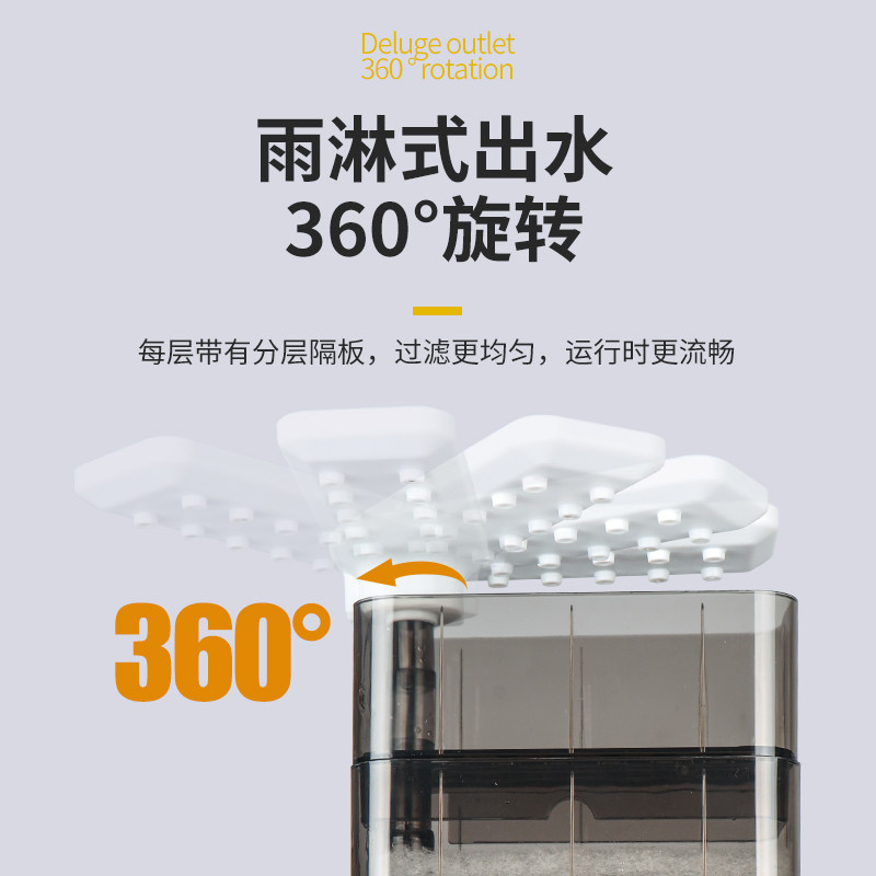 📚 鱼缸龟缸六角恐龙缸低水位过滤器三合一滴流小型酷鱼过滤桶吸便
