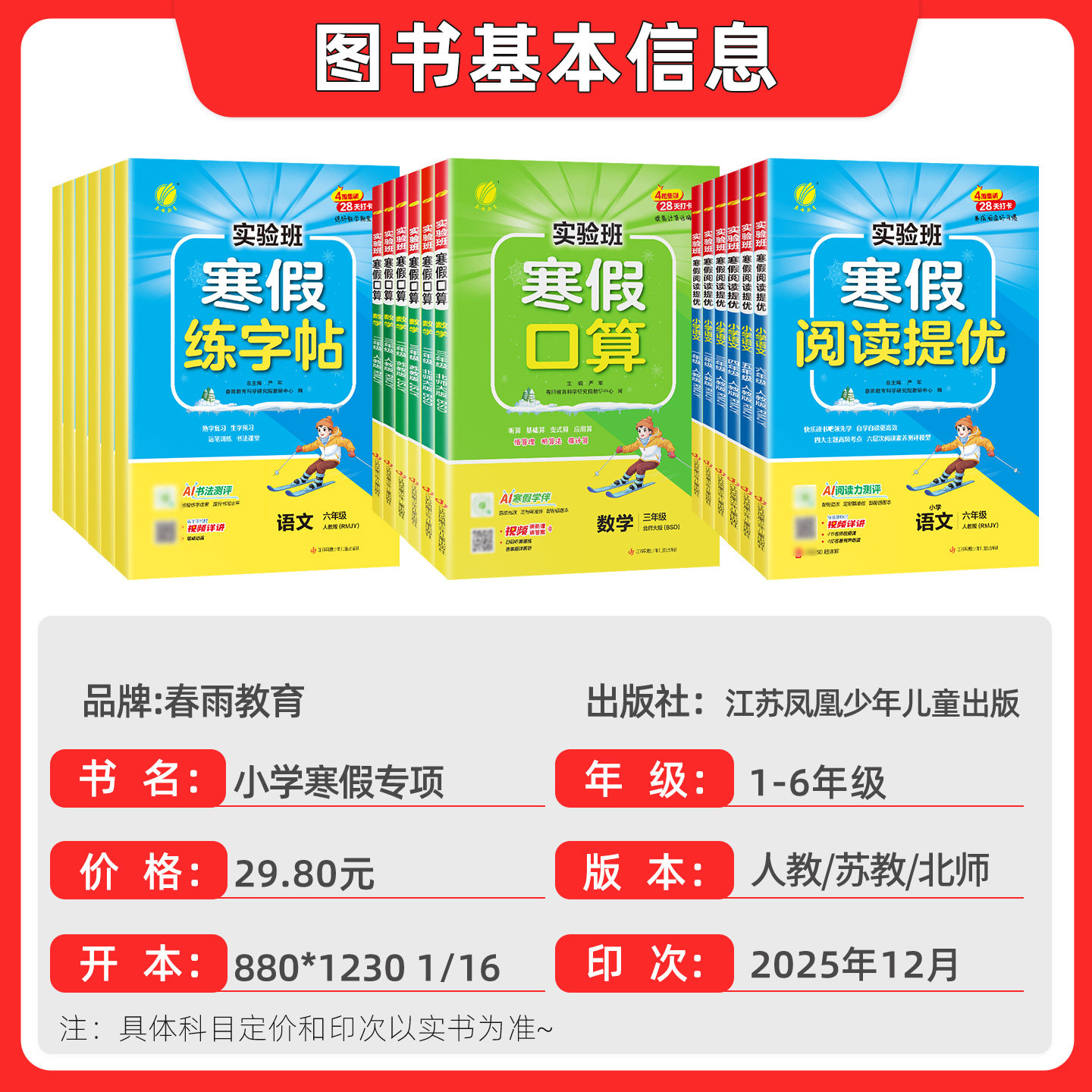 📚 2026春春雨实验班寒假口算计算题应用题寒假衔接一年级二三四五六年级上册寒假作业寒假练字帖阅读语文数学英语人教版苏教版北师版