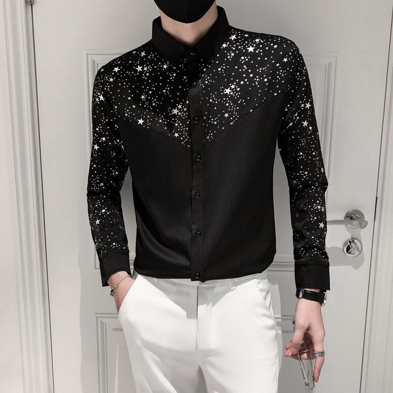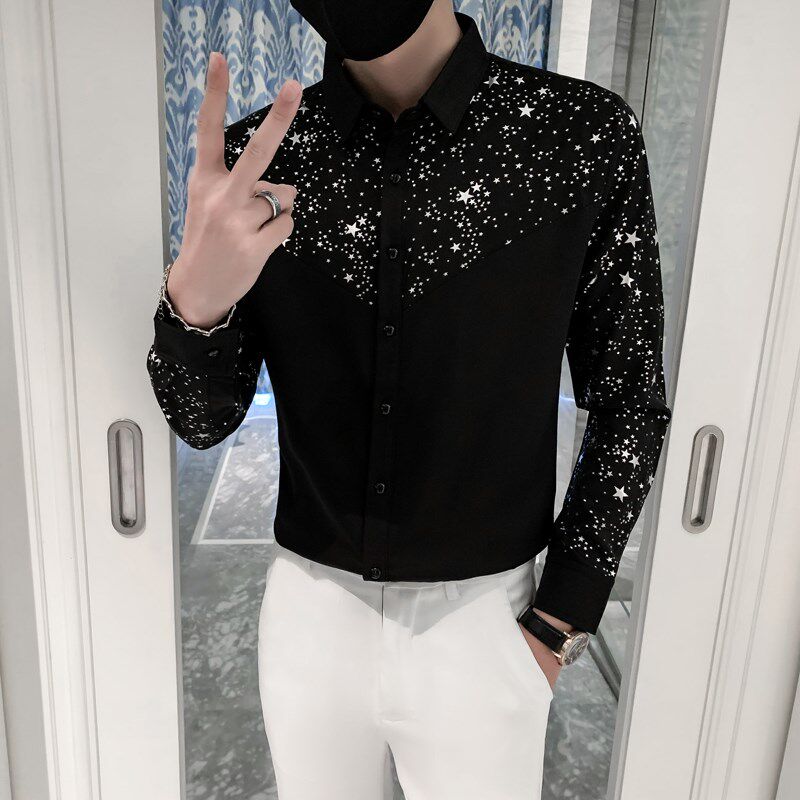 📚 发型师修身个性烫银衬衫夜场男歌手舞台演出服另类印花亮片衬衣潮
