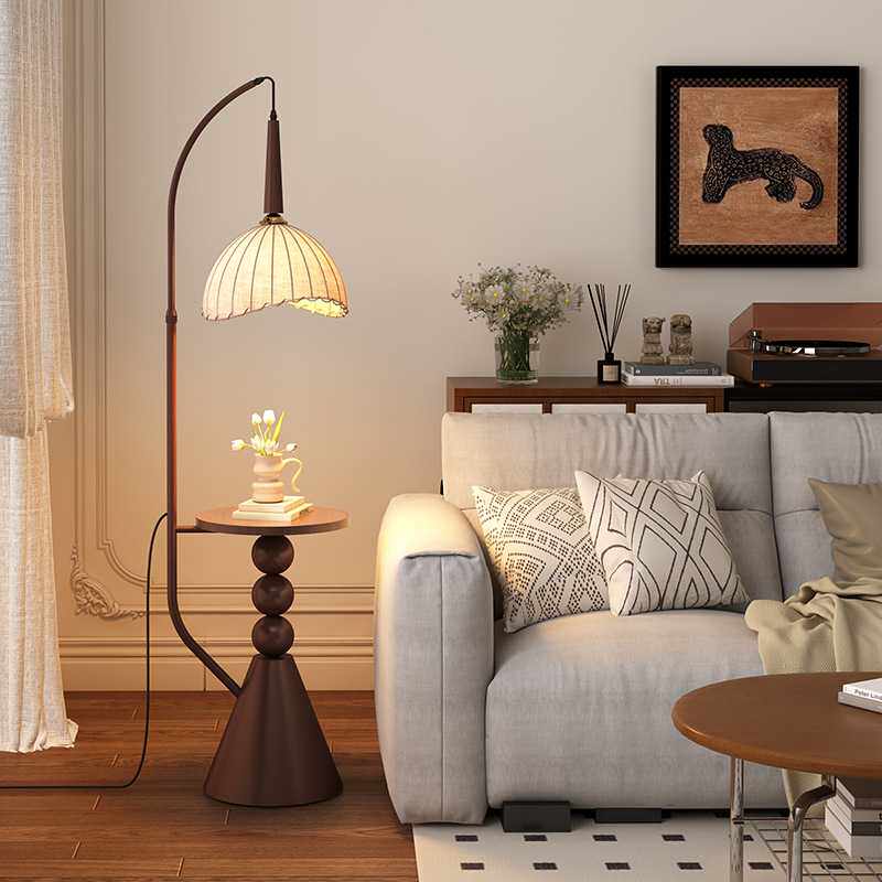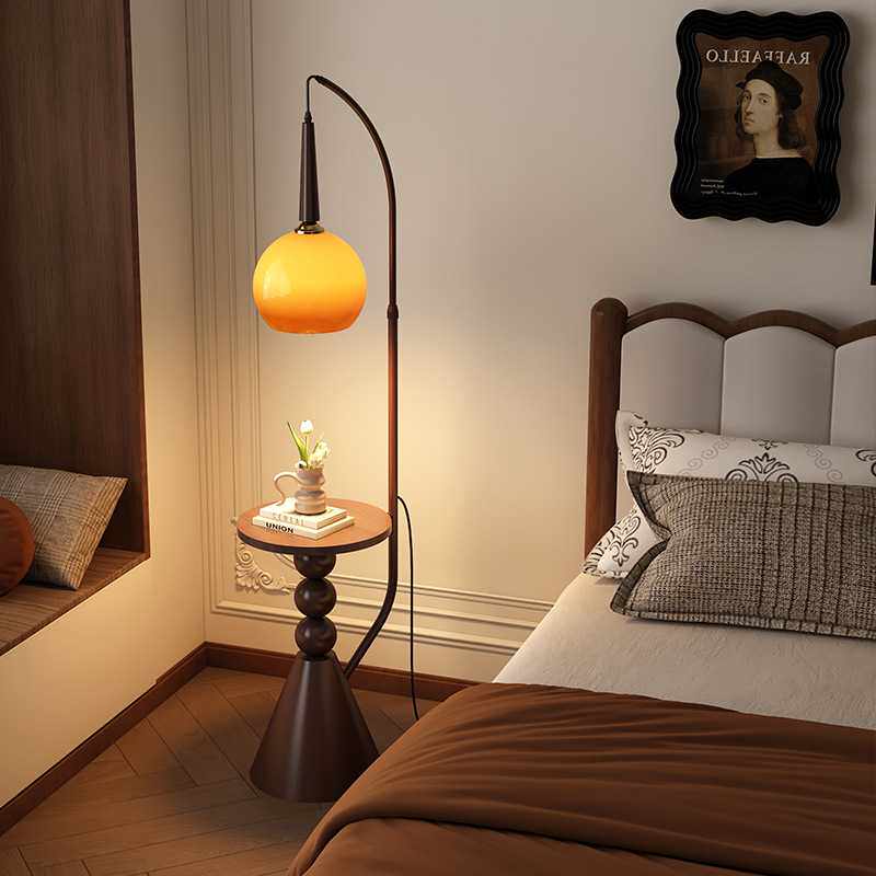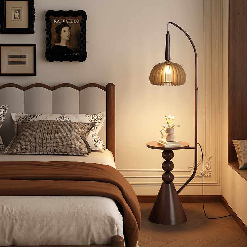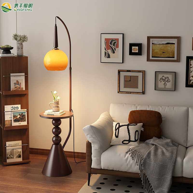📚 落地灯置物架一体中古风客厅高颜值卧室床头灯氛围感护眼柜台灯