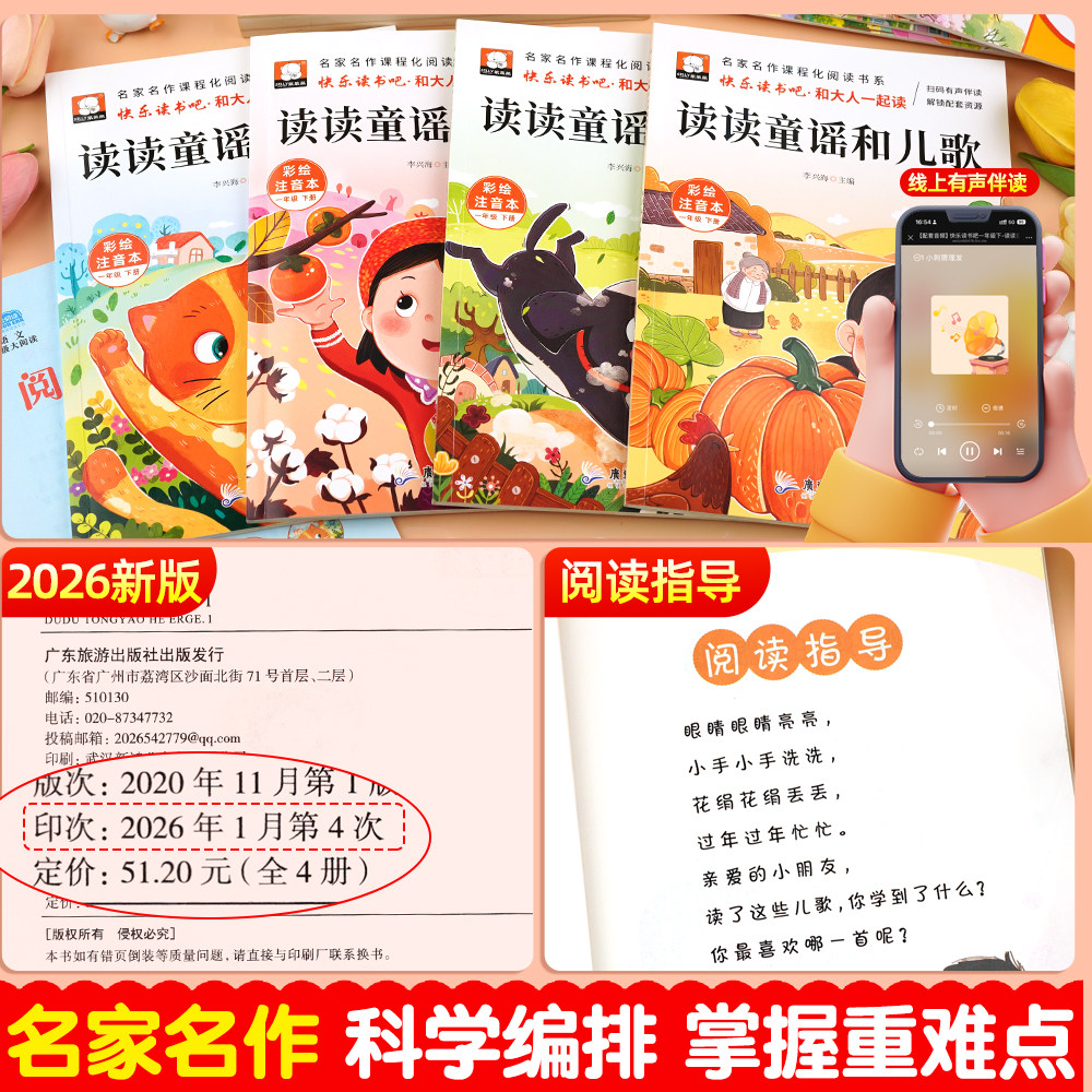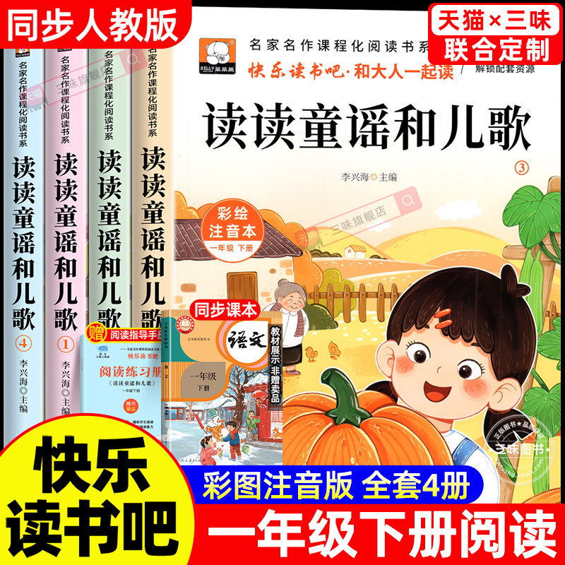 📚 读读童谣和儿歌一年级下册快乐读书吧一年级阅读课外书必读老师推荐全套4册注音版读书真快乐小学生经典书目上和大人一起读人教版