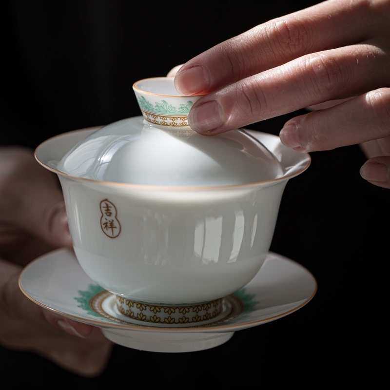 📚 三才盖碗单个甜白瓷薄胎景德镇茶具套装陶瓷茶杯泡茶碗手绘陶瓷