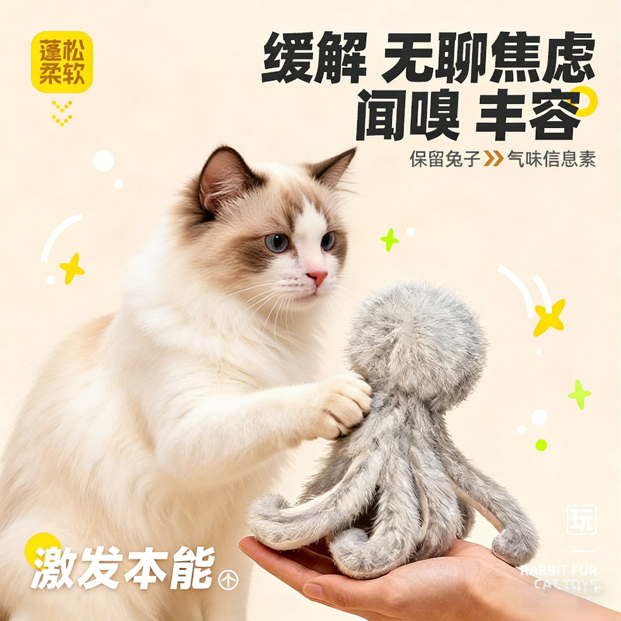 📚 兔毛章鱼猫咪丰容玩具自嗨解闷捕猎替换头消耗体力逗猫棒