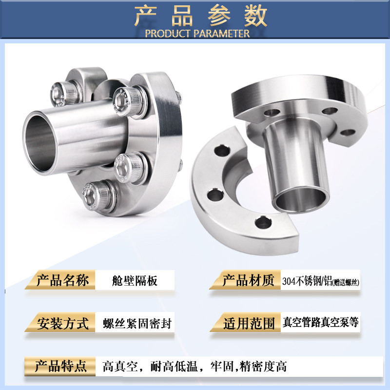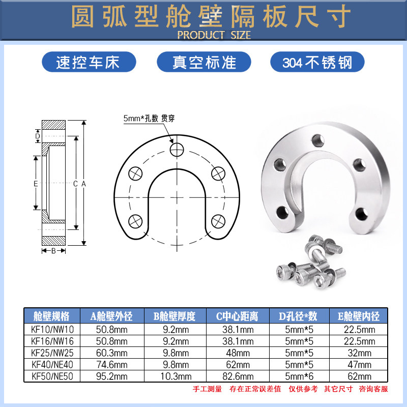 📚 不锈钢KF真空管夹舱壁隔板Bulkhead Clamp半月型对开环颈带孔卡箍