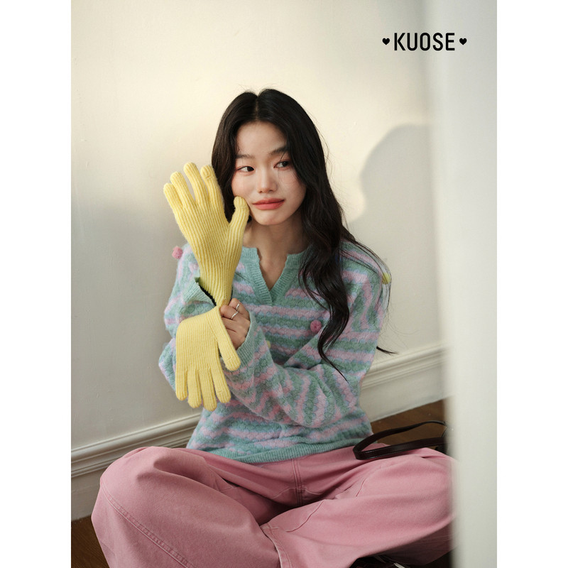 📚 阔色浅绿色条纹软糯立体毛毛上衣2026春季新款女装针织衫毛衣秋冬