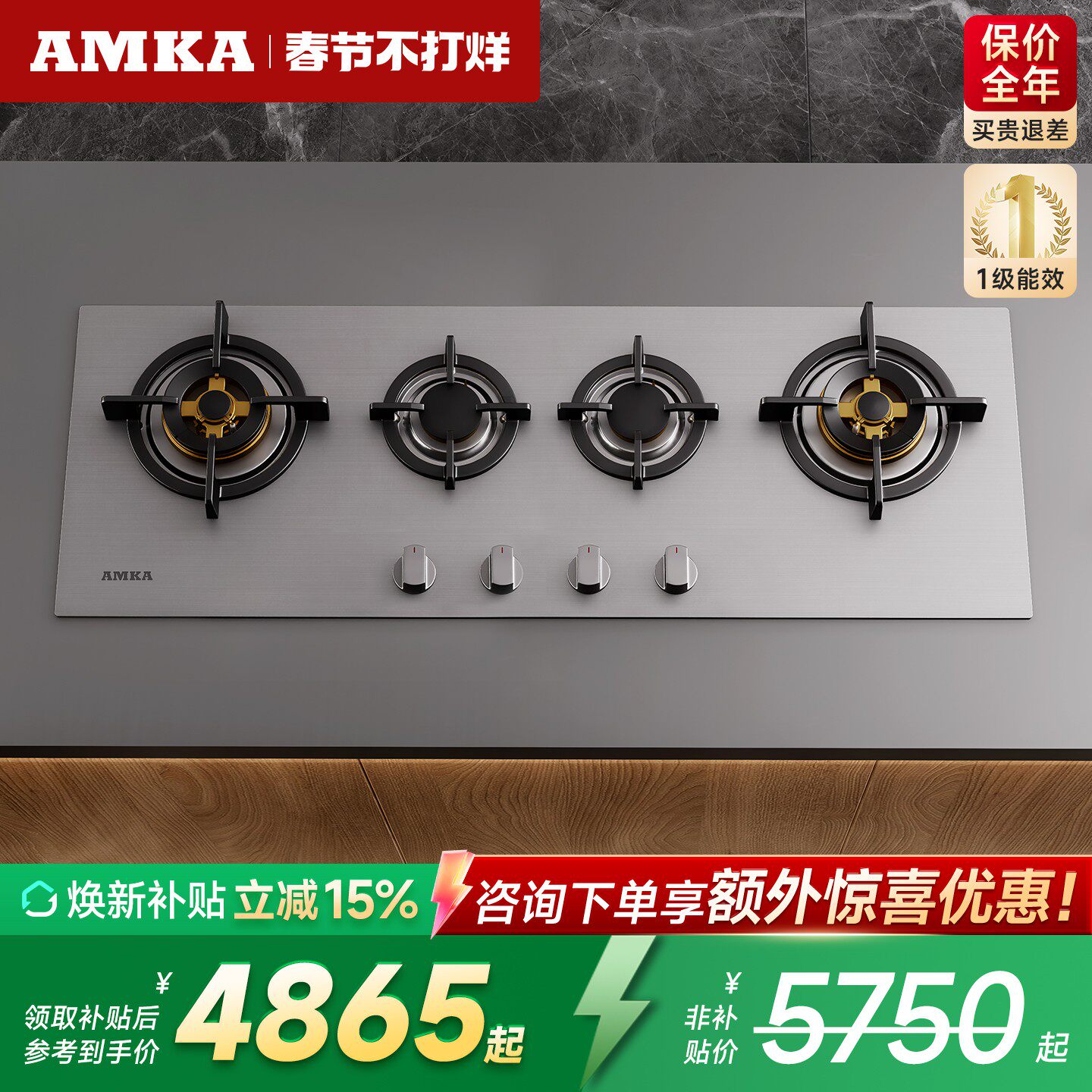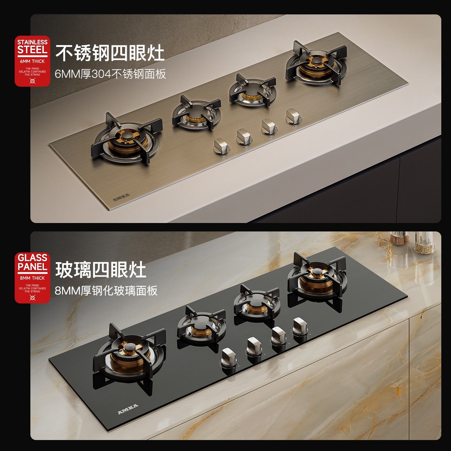 📚 AMKA不锈钢四眼燃气灶嵌入式1m2家用欧式多头煤气炉三头天然气灶