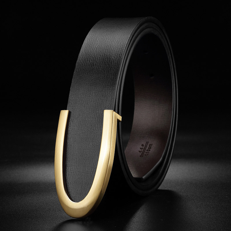 📚 C字皮带男士真皮平滑扣简约腰带男韩版潮流时尚板扣休闲青年裤带