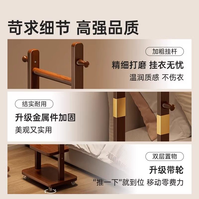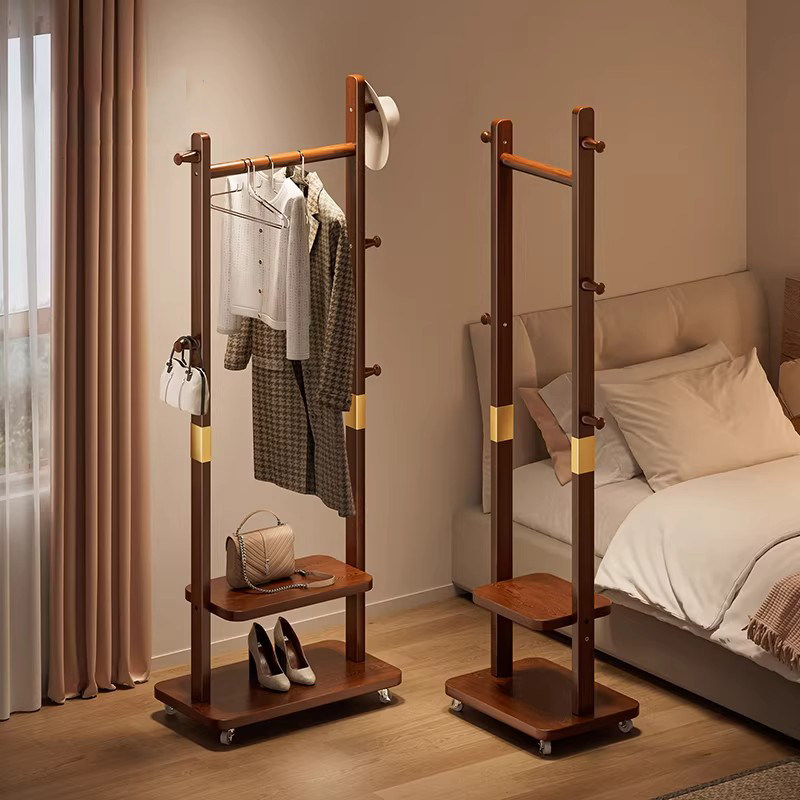 🏠卧室的空间虽小,但有了这款落地挂衣架,衣物、包包、鞋子都有了它们自己的家。它的设计简约大方,不仅不占地面面积,而且移动方便,真正做到了实木的不占地特性。🛋️