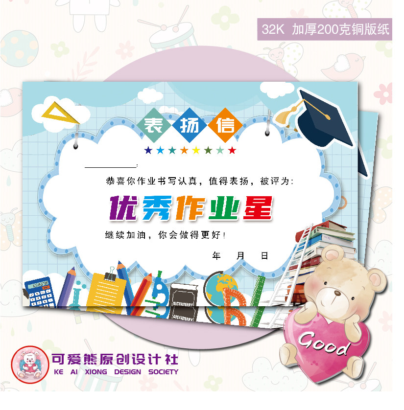 📚 32K 7号口算小达人表扬信小学生幼儿园班主任通用创意激励卡通奖