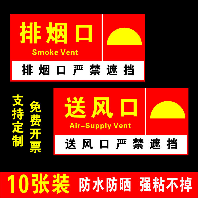 📚 消防排烟口送风口标识正压送风口排烟风机标牌补风口末端试水贴纸
